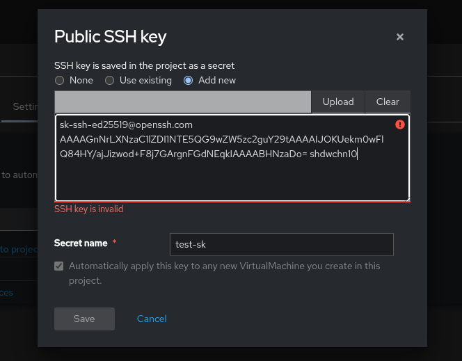 I tried to add ed25519-sk public SSH key and got an error: 'SSH key is invalid'