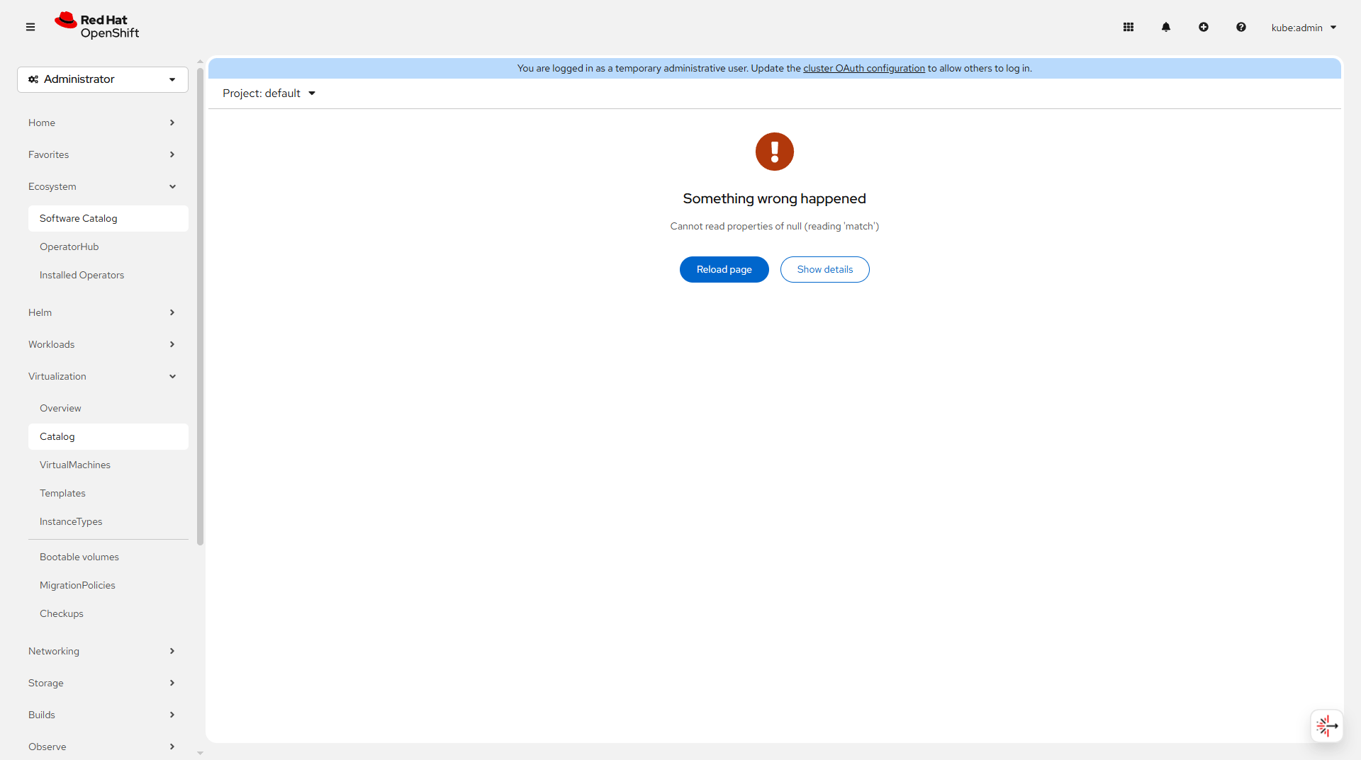 In catalog -> template, select a template and check "Boot from CD" under storage, the page is crashed