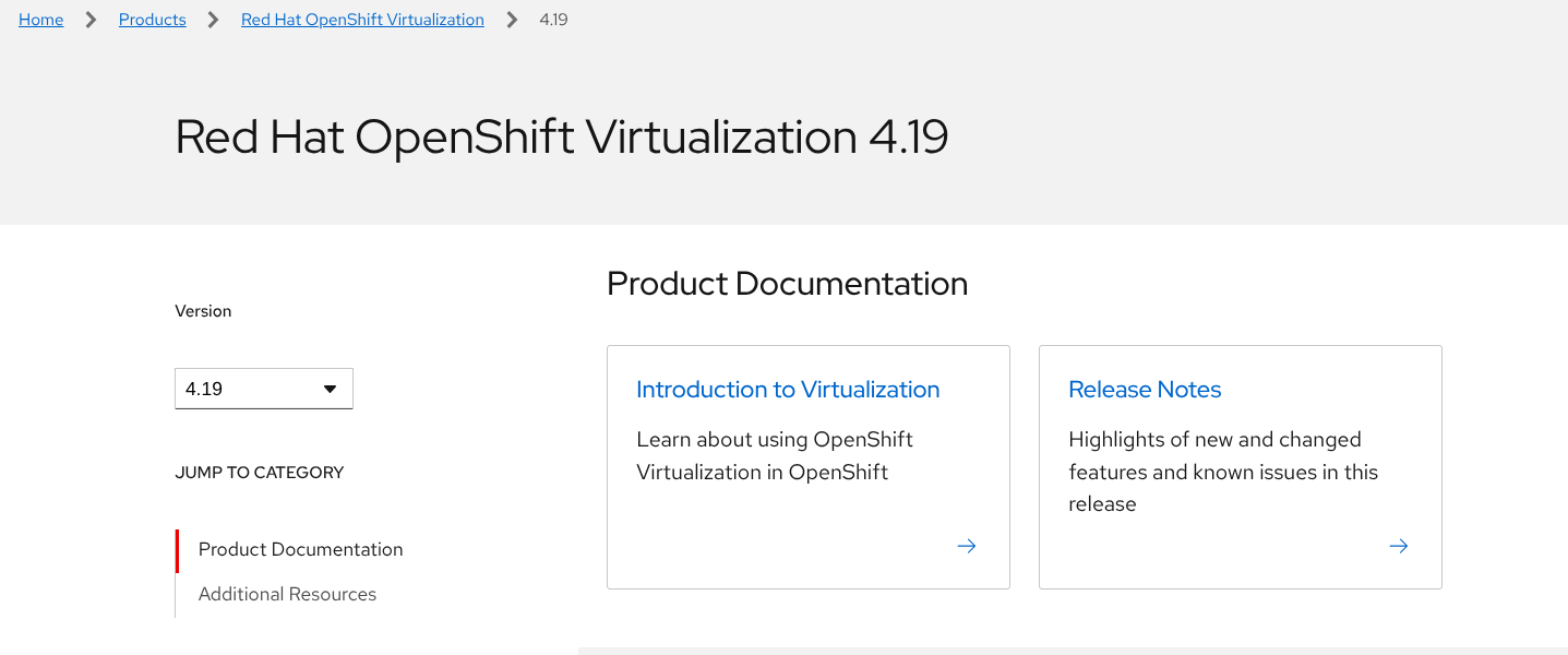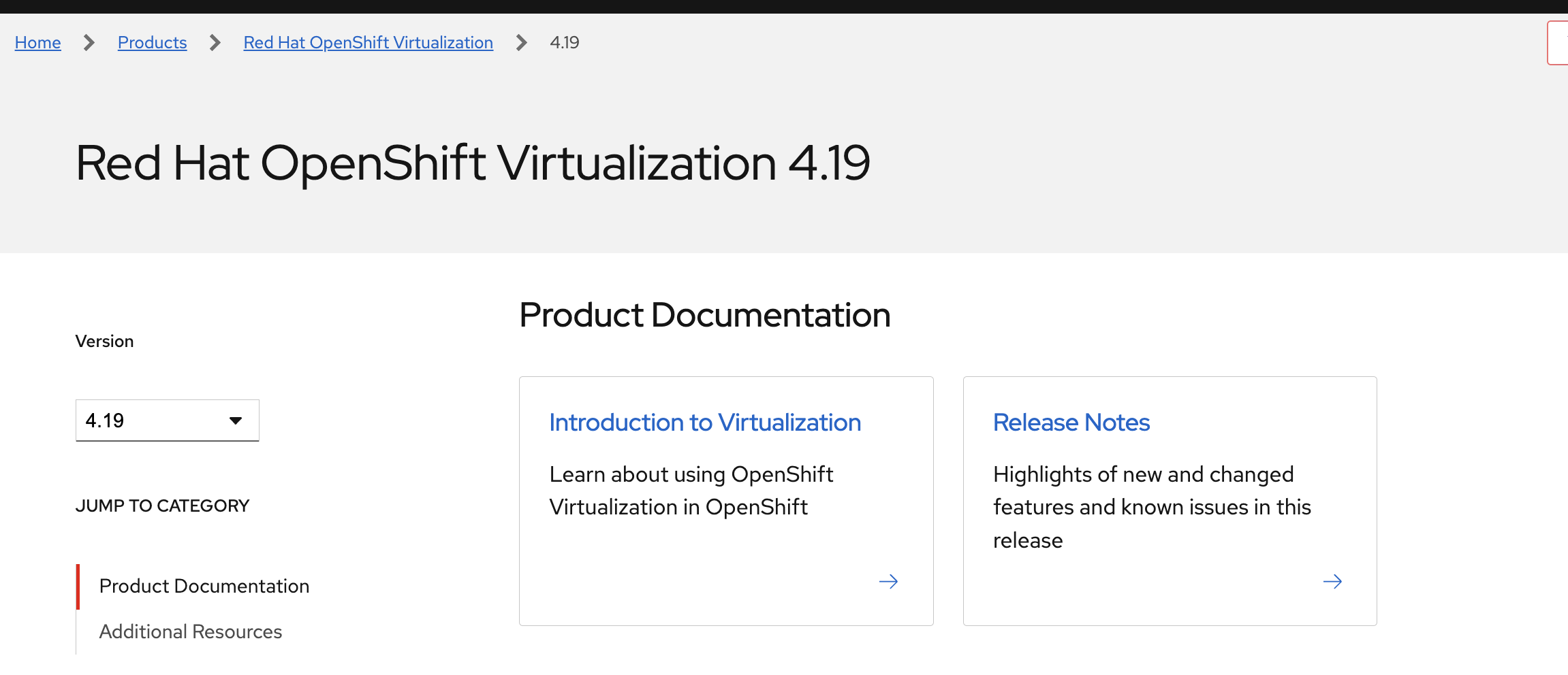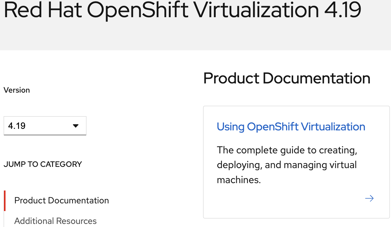 1.Got to https://docs.redhat.com/en/documentation/red_hat_openshift_virtualization/4.19