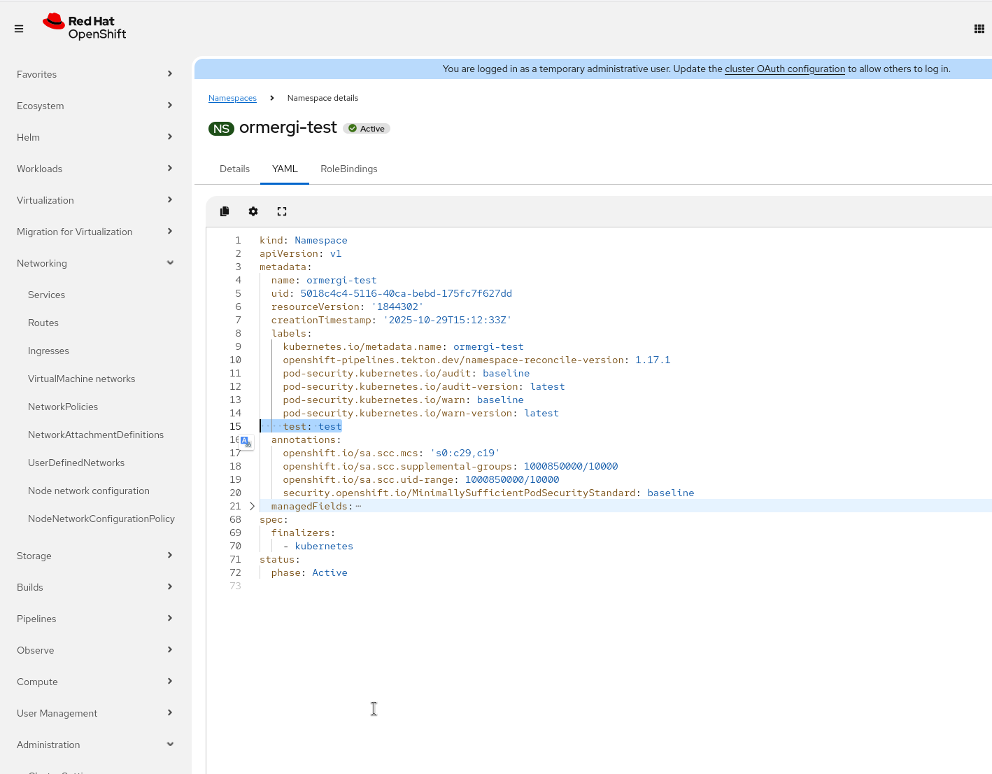 Project list shows nothing The page doesnt present matching namespaces to label test=test