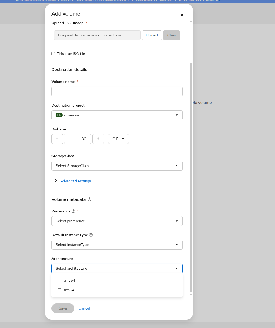 When non-priv user uploads an image to create a bootvolume, the Architecture selector is absent