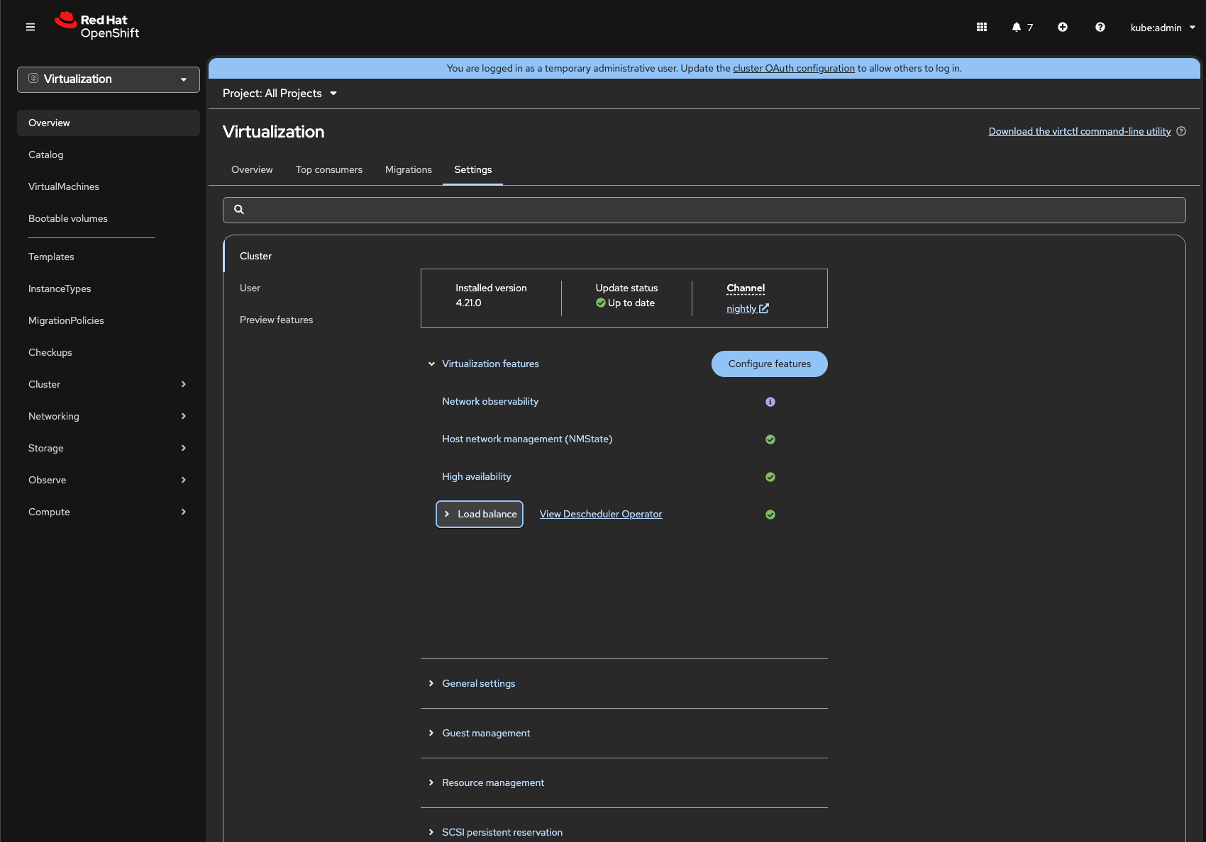 1. Navigate to Virtualization -> Overview -> Settings 2. Open any submenu 3.