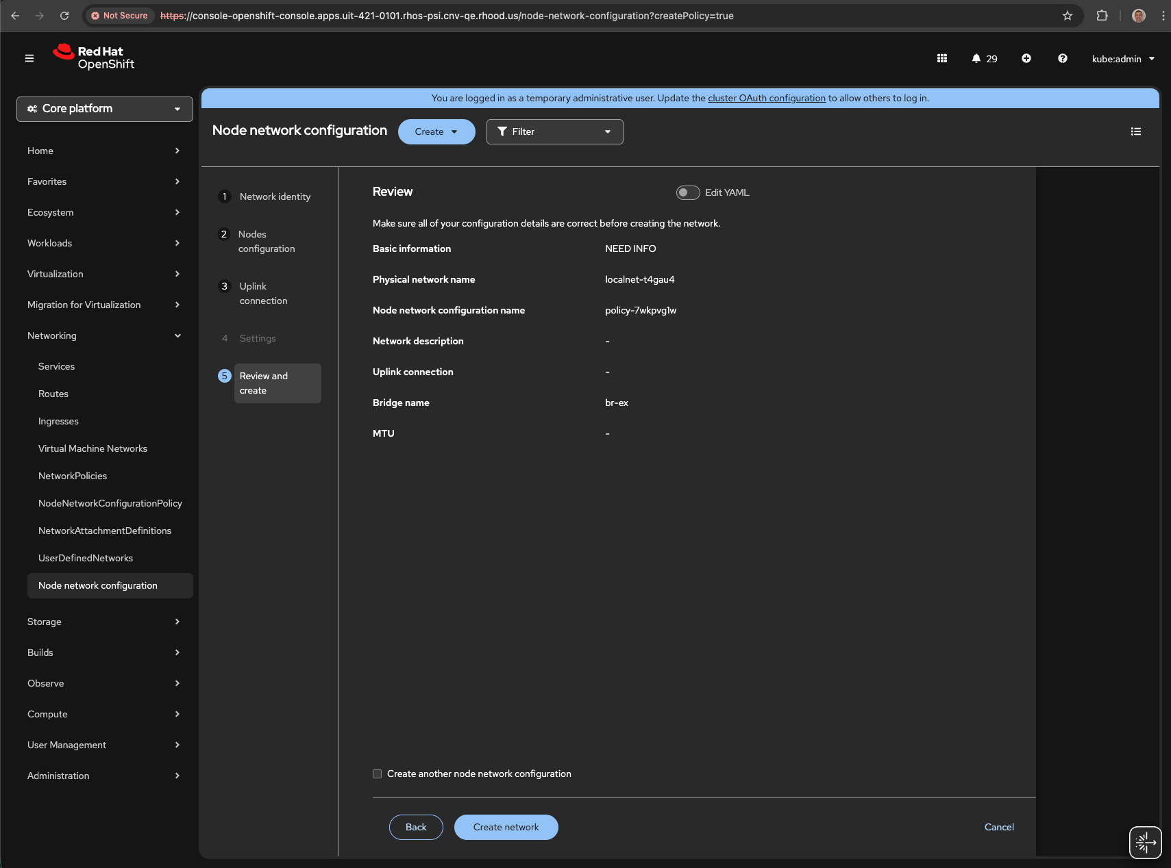 1. navigate to NNC page 2. start creating NNC with form 3. on last step check "Create another node network configuration" checkbox 4. click Create network button