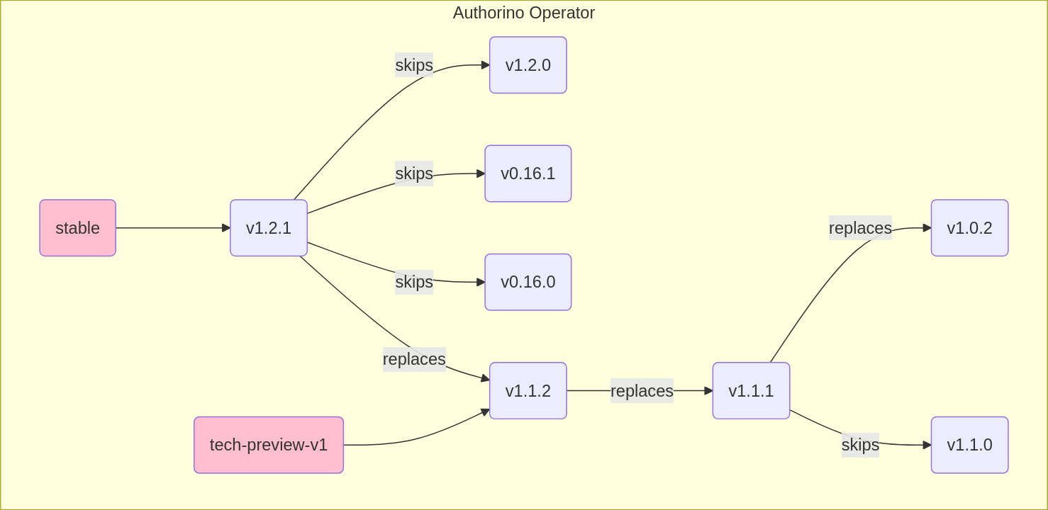 1. tech-preview-v1 channel OCP >=4.14 v1.1.2 introducing "Auto upgrade Authorino to latest API version" and replaces v1.1.1