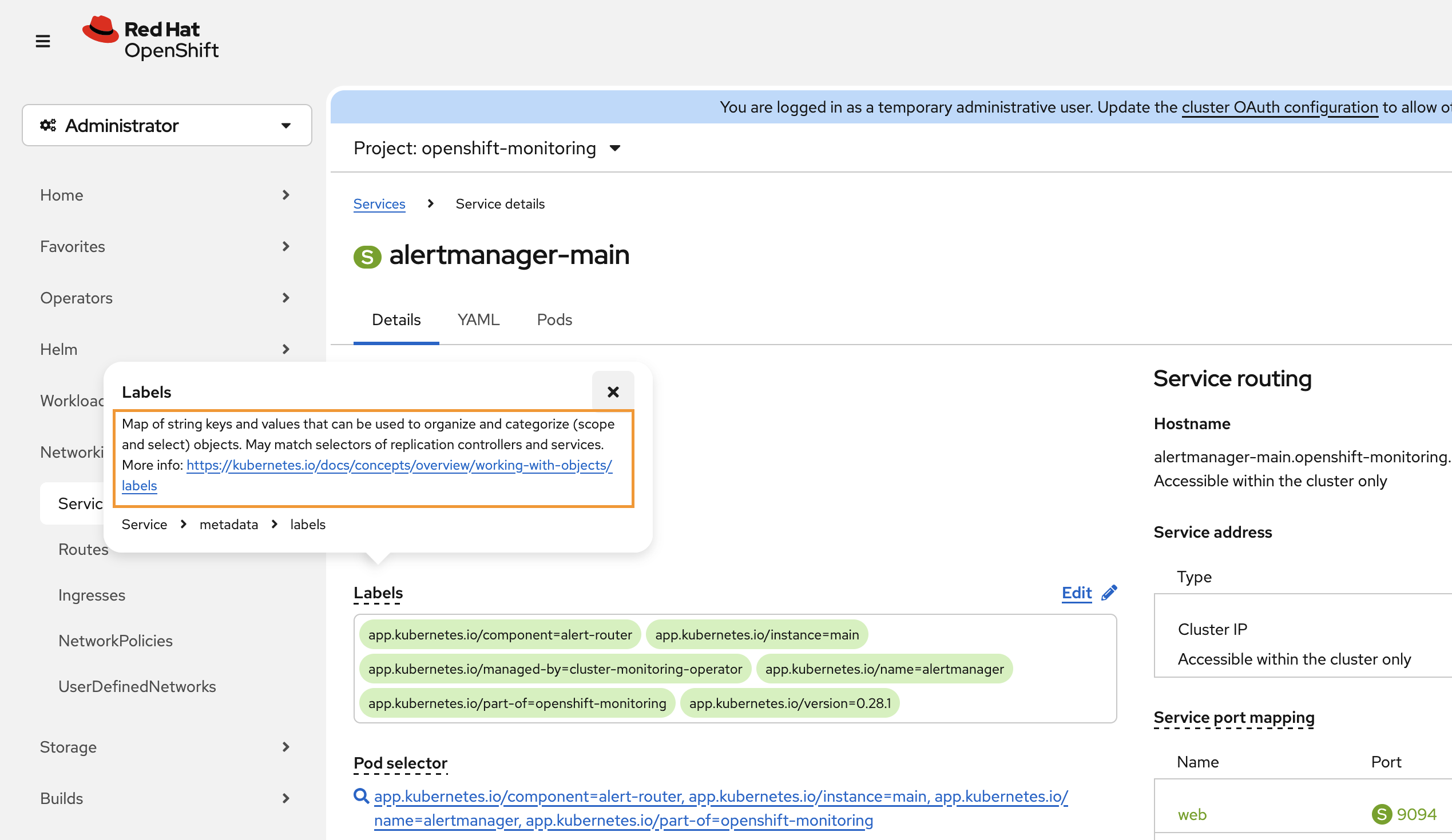 Example use case - description of "metadata.labels" of a IoK8sApiCoreV1Service: