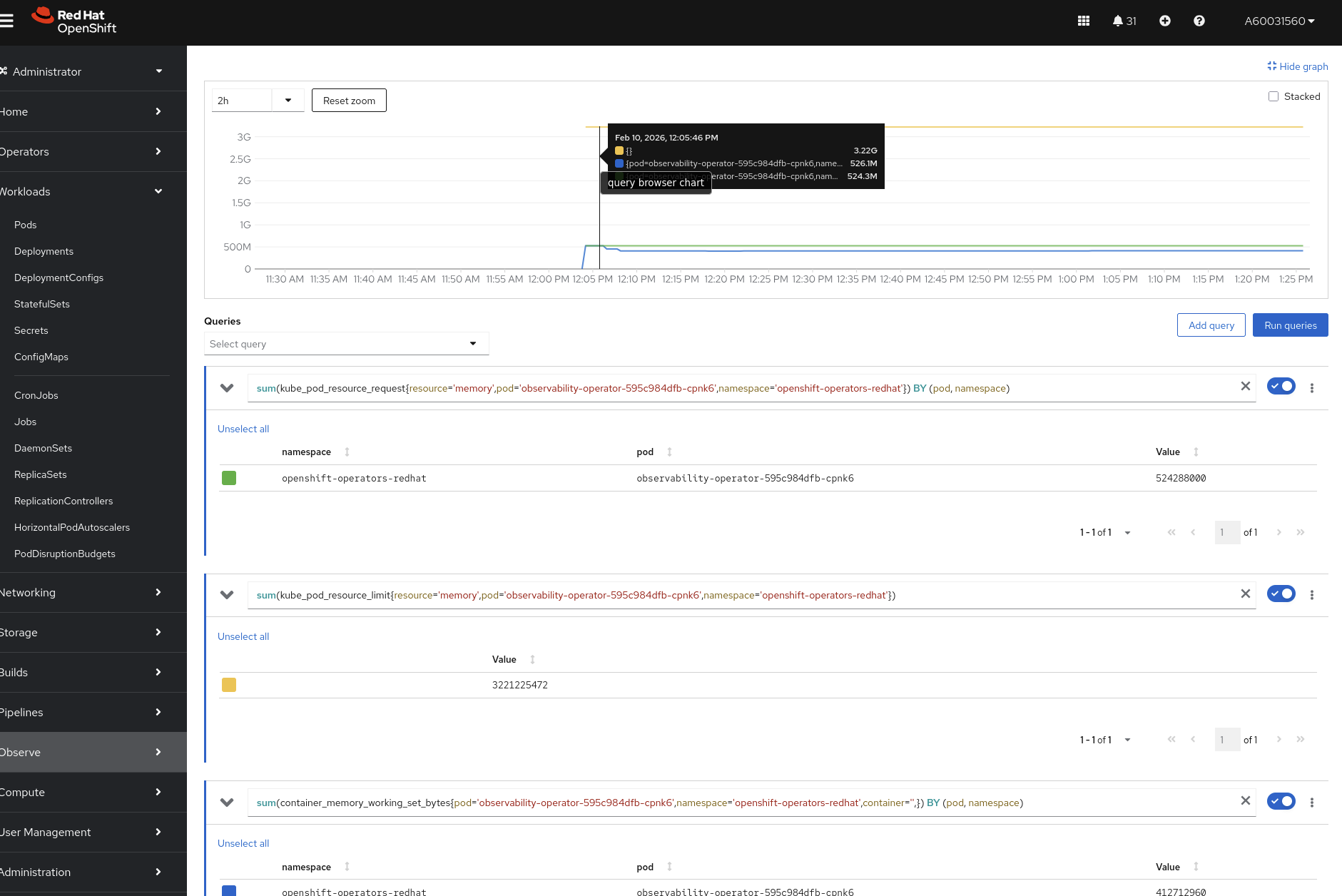 observability-operator OOMKilled due to too low resource limits