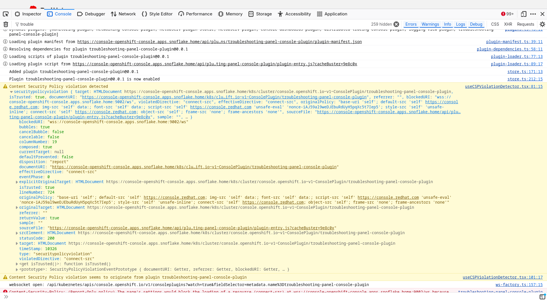 Happens every time the plugin loads. Screenshot of web console: