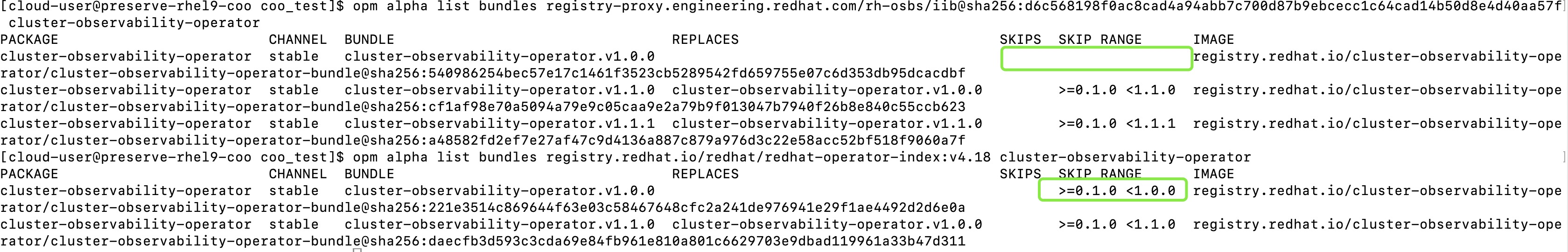 Both COO 1.0.0 and COO 1.1.0 image SHA-ID changed, skip range of COO 1.0.0 is missing also.