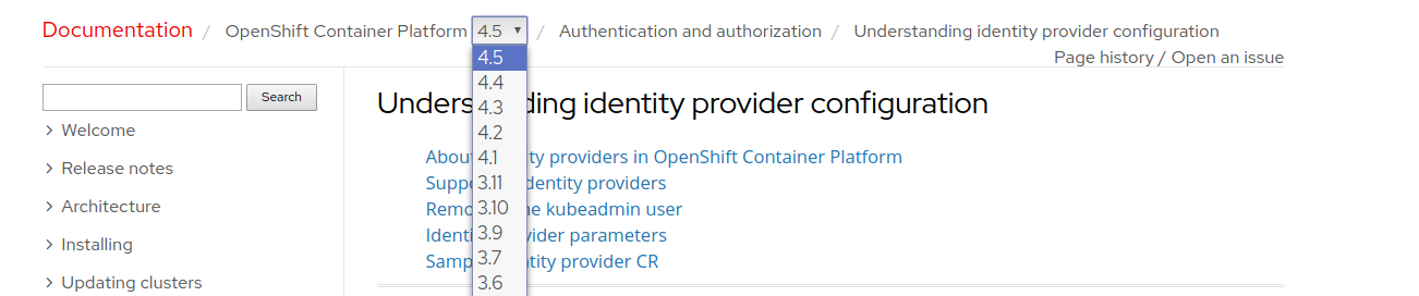 This links to 4.1 documentation. Would be nice if it could point to the same version of documentation, as the cluster is.