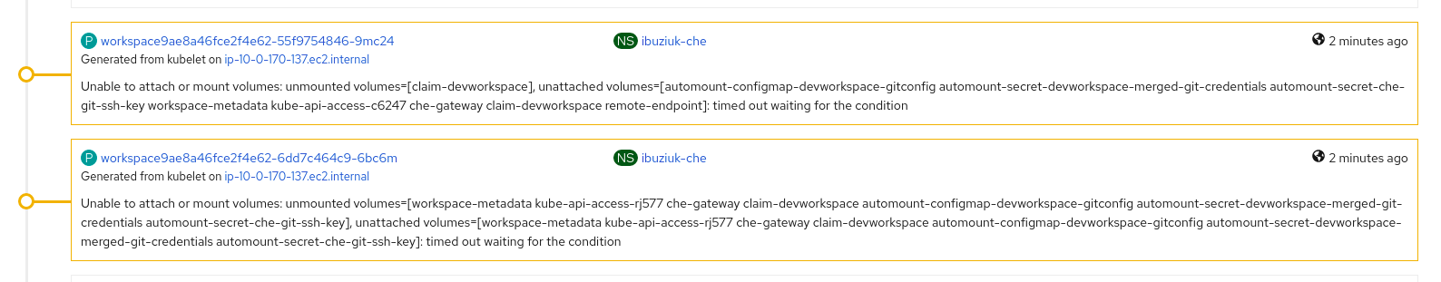 Verified with both crw 2.13 and crw 2.14 operator versions on OCP 4.10 cluster, error is displayed on starting workspace