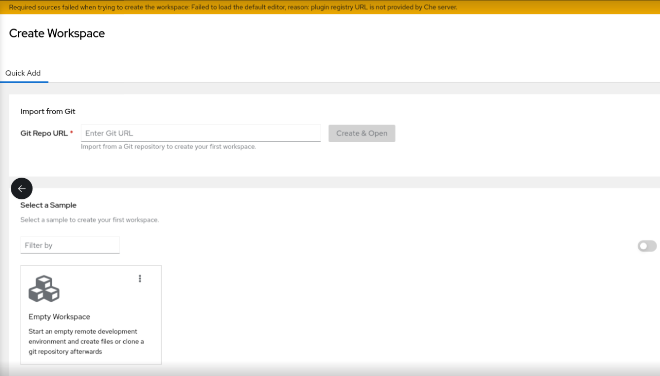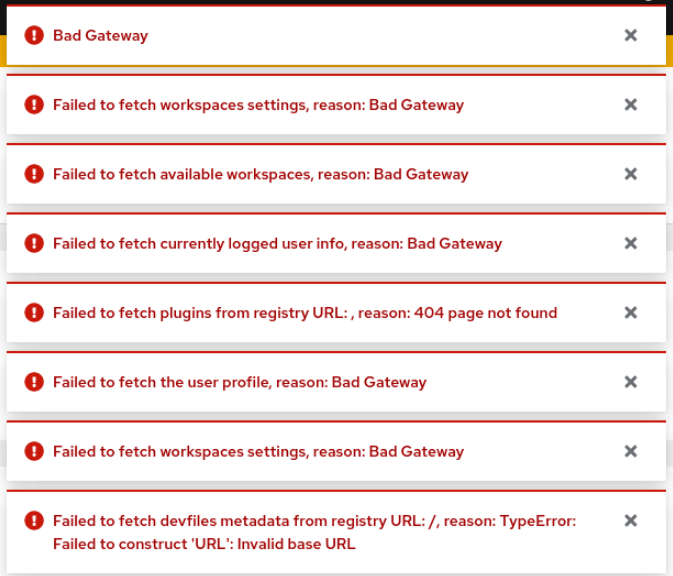 After a fresh install of DS 3.3 onto the IBM Power cluster, I got some stacked errors, and no devfiles were shown in the list of samples.
