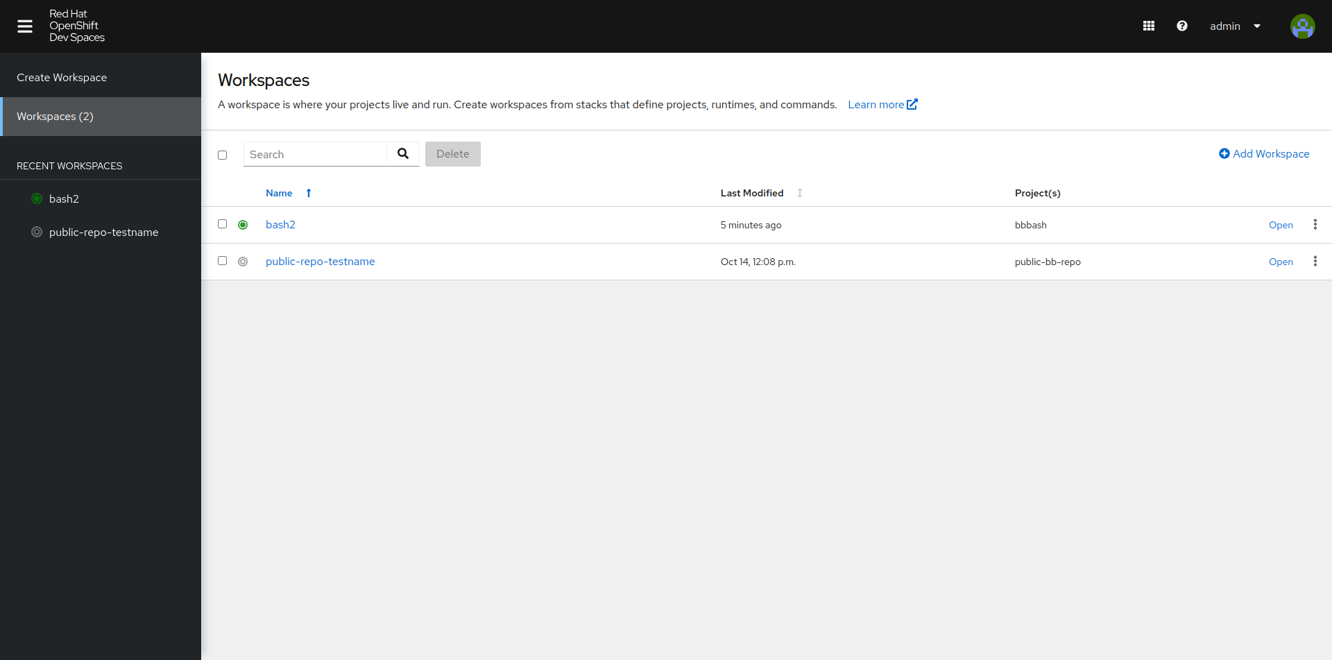 Before this update, starting a new workspace by entering the URL of a Bitbucket.org-hosted public repository failed. With this update, you can successfully start a new workspace by entering the URL of a Bitbucket.org-hosted public repository that you want to be cloned into the workspace.