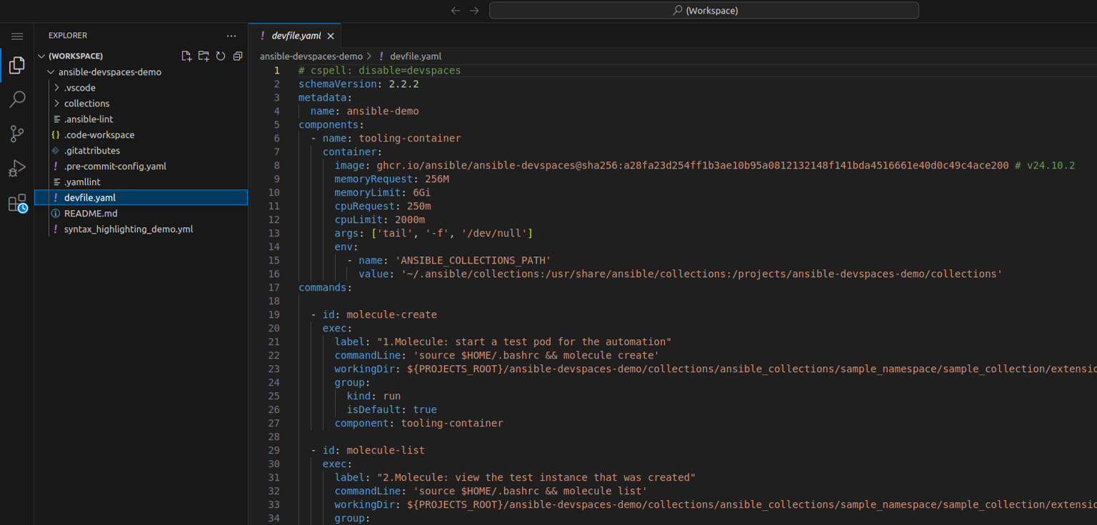 Ansible sample workspace opened VS Code Editor with empty project