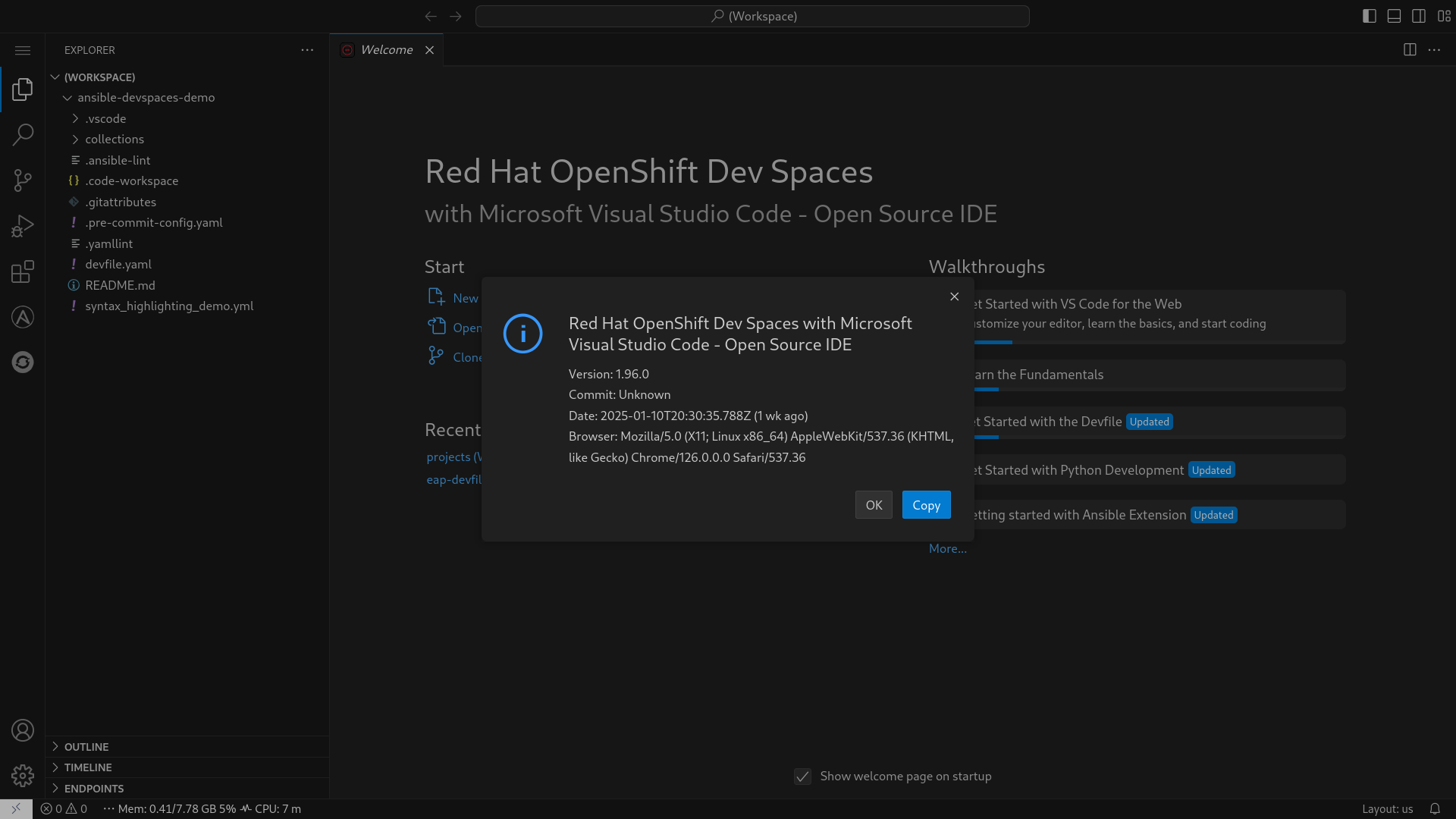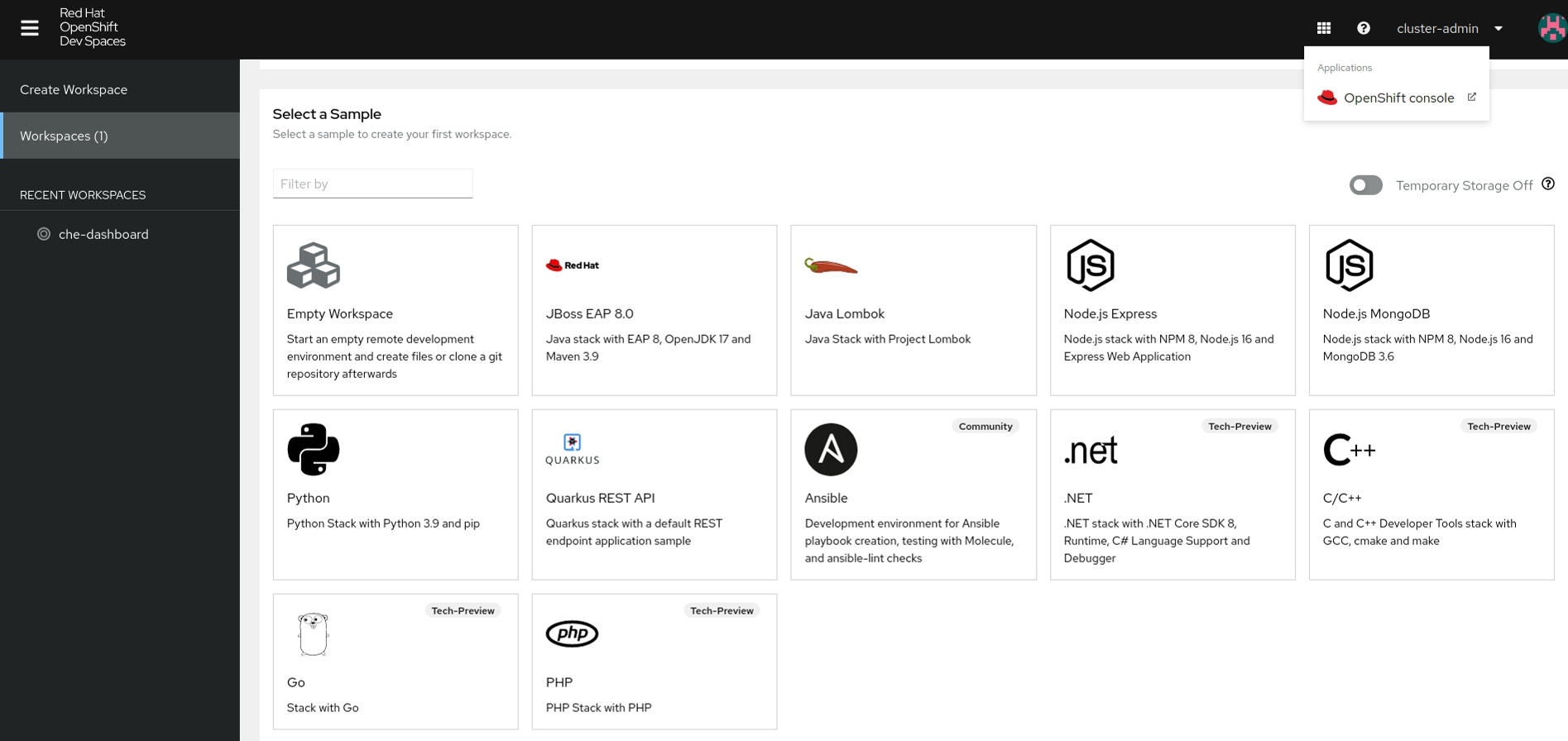 1. Red Hat OpenShift Dev Spaces (formerly CodeReady Workspaces)
