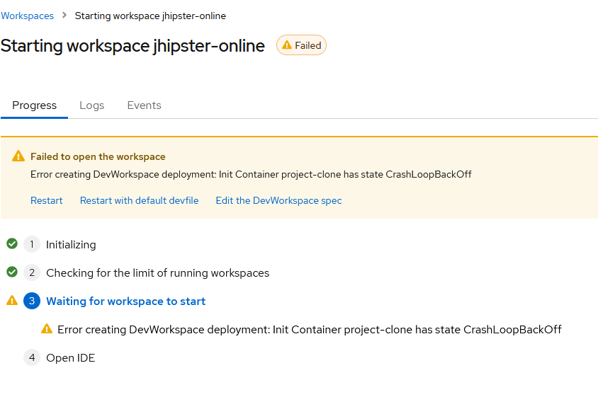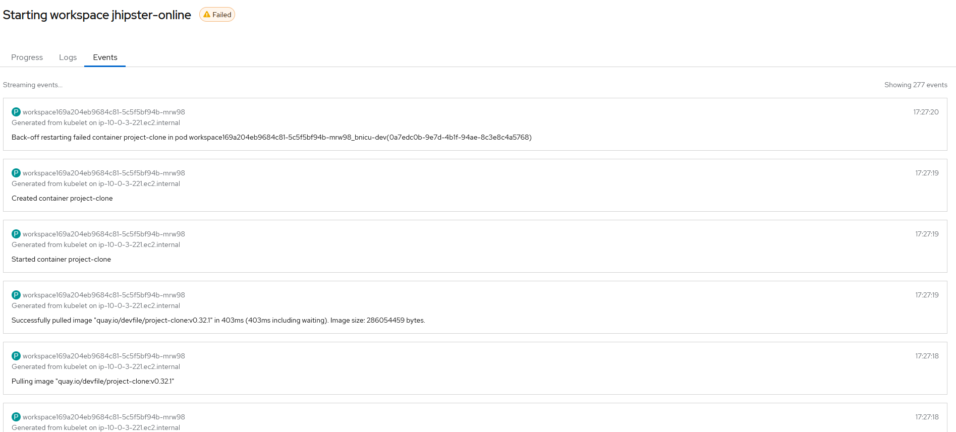 Back-off pulling image "quay.io/devfile/jhipster-online@sha256:254c710006b1582b2ebc48cc74ae080a9e10caa99dc1b62c1adb3341f072aede"