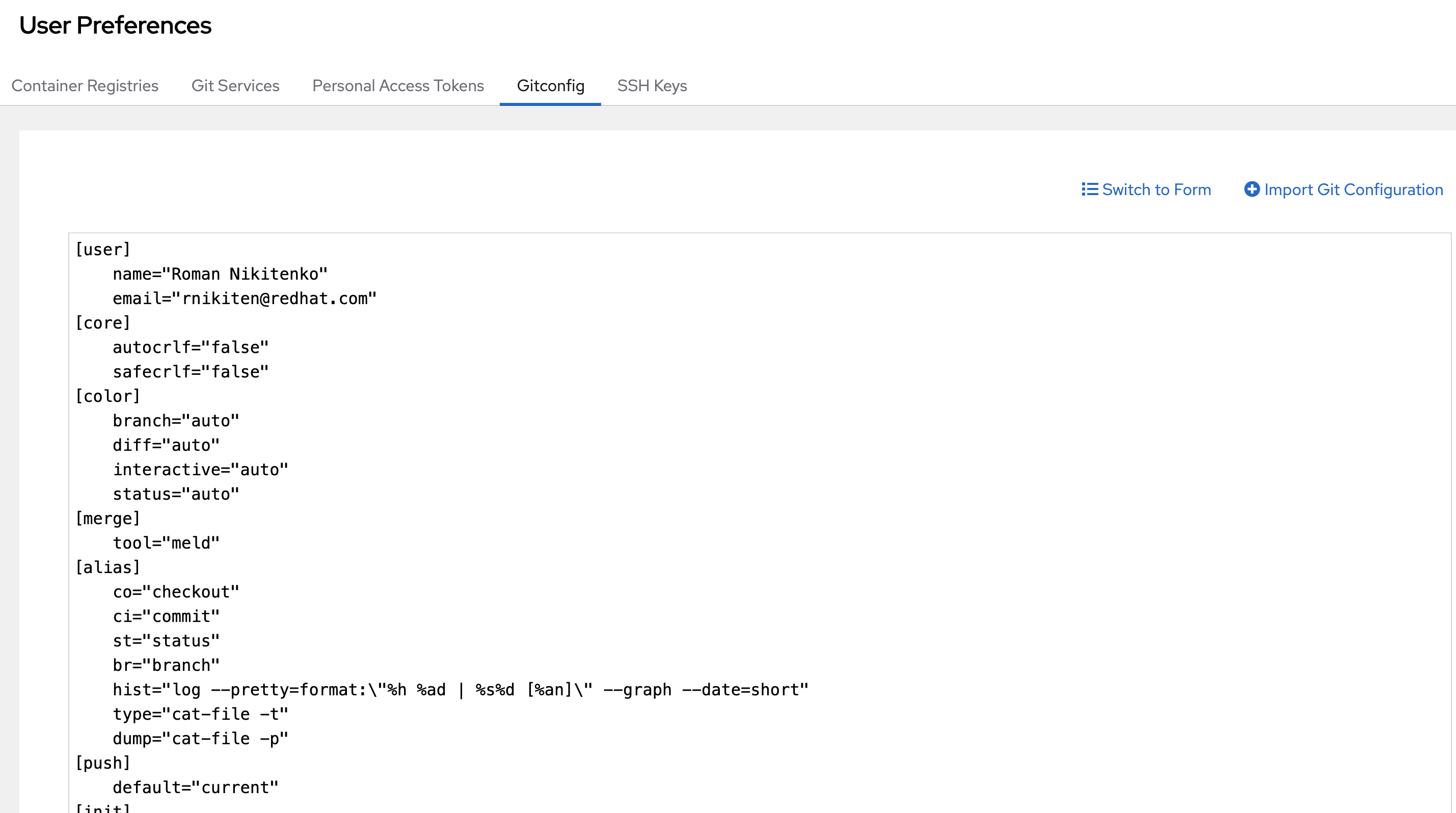 With this release, you can view the full content of the `.gitconfig` file. Access it on the User Preferences *Gitconfig* tab by clicking *Switch to Viewer*.