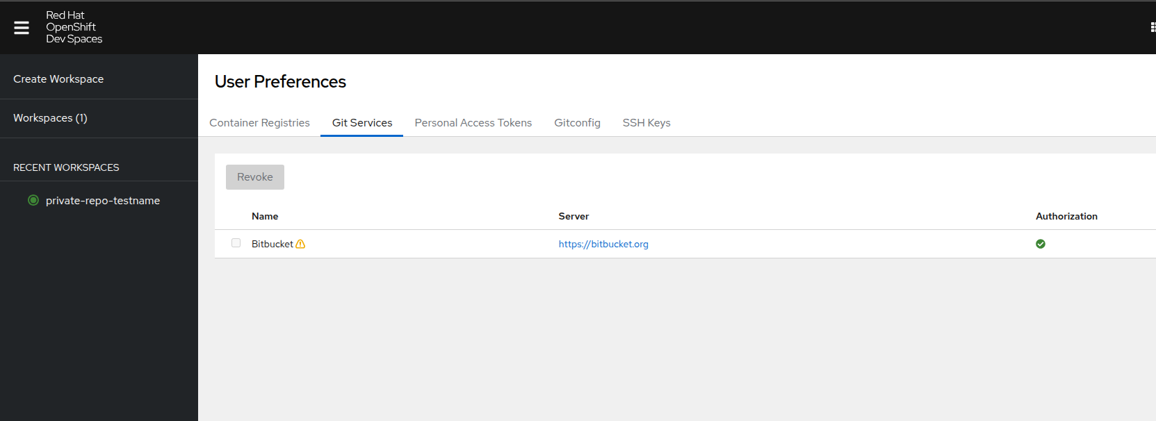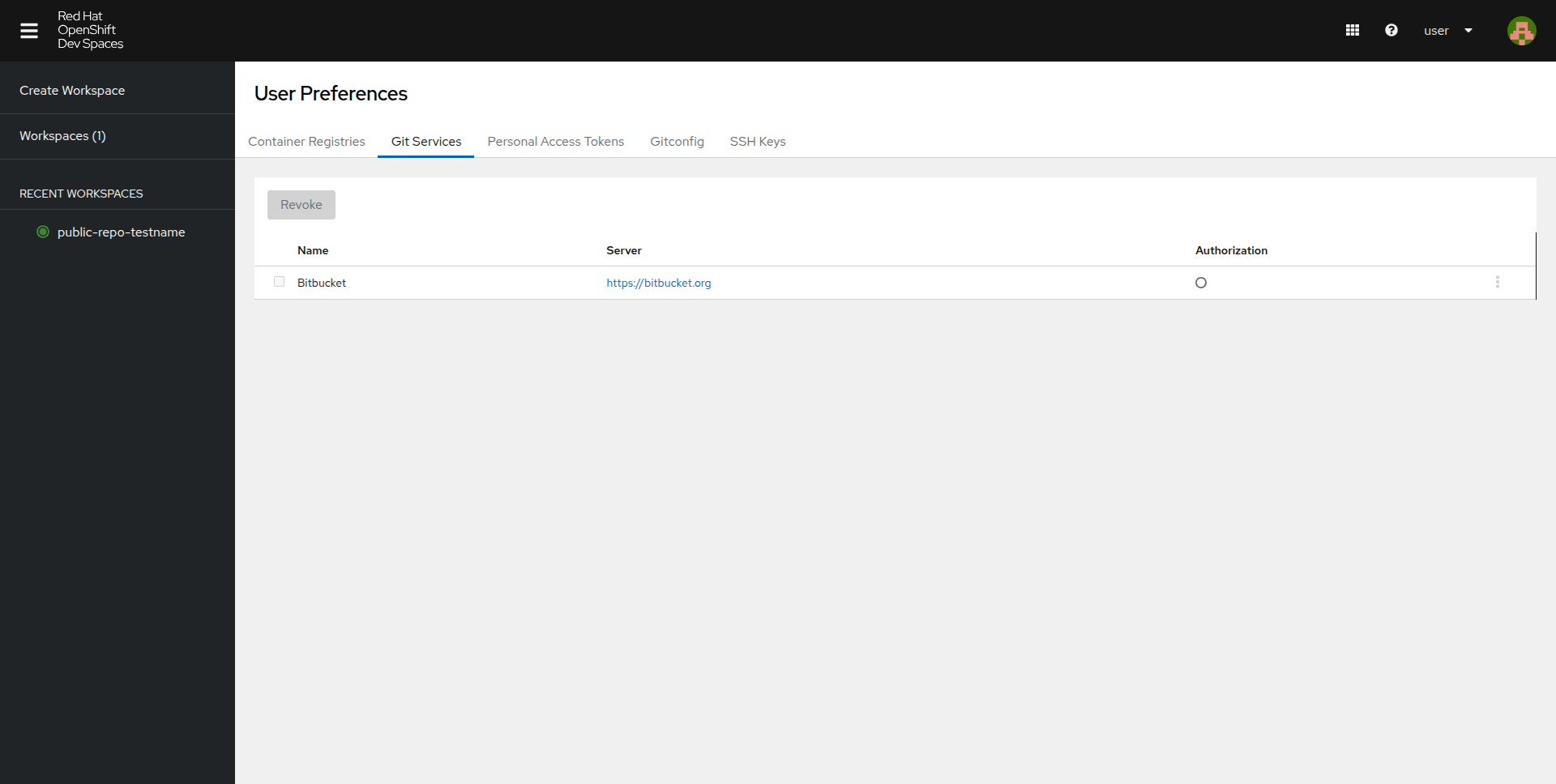 - go to Dashboard -> User Preferenses -> 'Git Services
