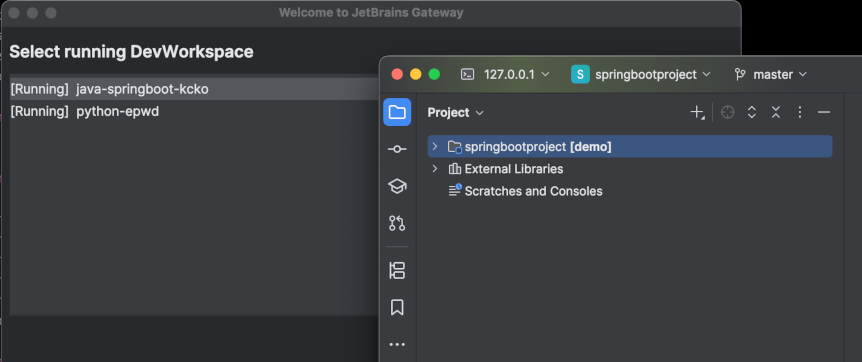 jetbrains-gateway://connect/#type=devspaces&dwNamespace=admin-devspaces&dwName=python-hello-world&link=tcp://127.0.0.1:5990#jt=3fe3a8a1-372c-49de-a8ef-61aa6fb52039_p=IU_fp=4D1F849D26551A1D3E747C8DD5D0D1806011B46411C2B1C561CAFAFA710B22A7_cb=243.23654.153_newUi=true_jb=21.0.5b631.30