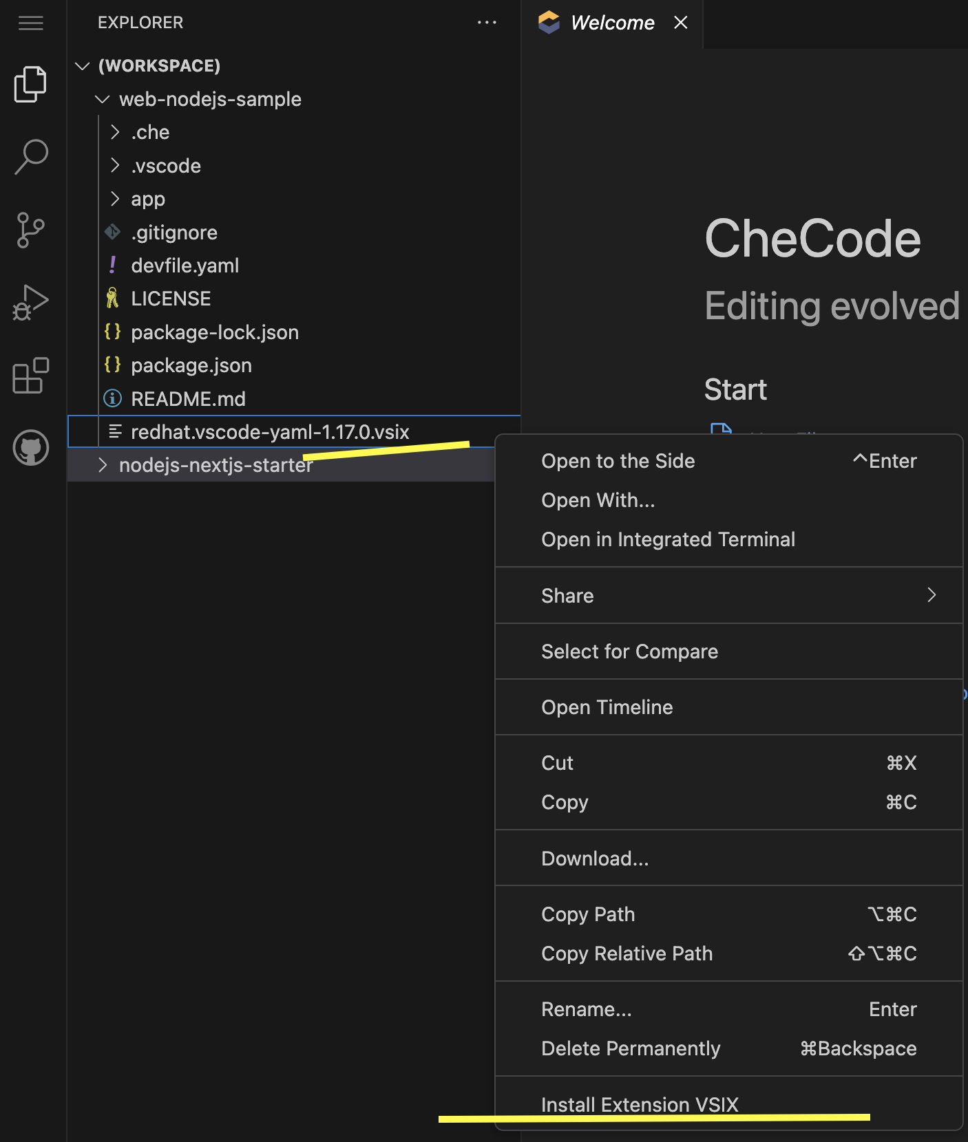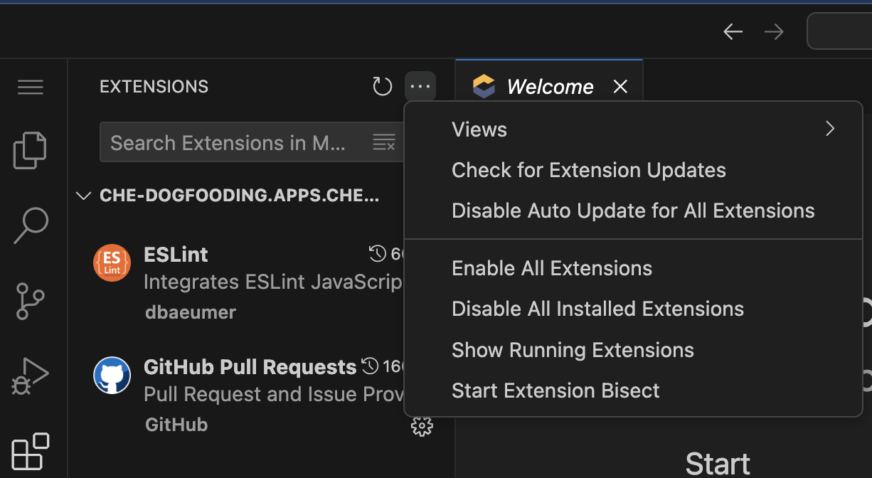 Currently, users can manually download unapproved extensions in VSIX format from the Microsoft Marketplace or OpenVSX. They can then manually install these extensions in a Dev Spaces workspace, bypassing the need to install from an internal extension registry, which contains a curated list of extensions.