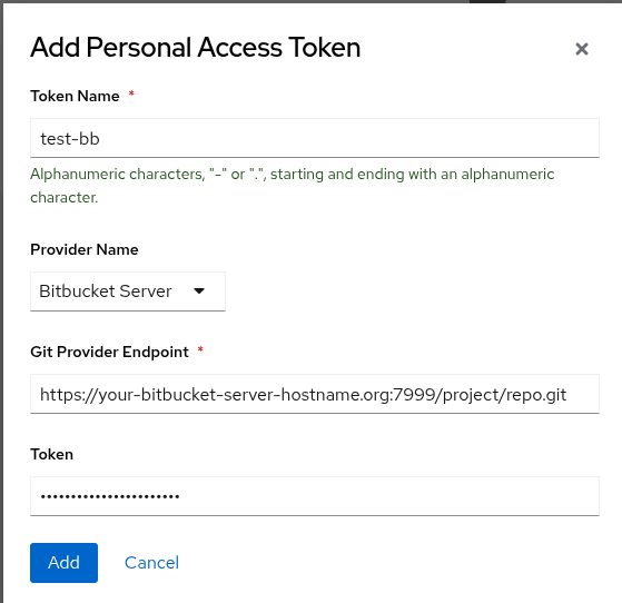 - Try to add a PAT -> Select Bitbucket server as Provider