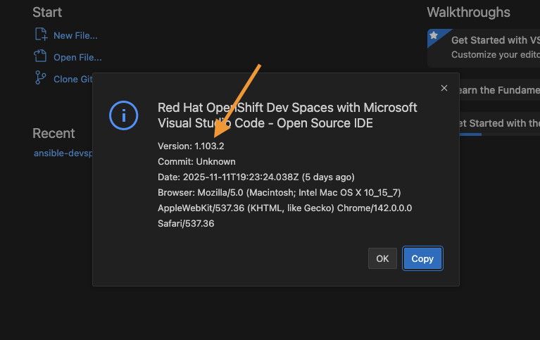 The che-code editor, which is based on Visual Studio Code - Open Source (Code - OSS), is now updated to version 1.103.2.