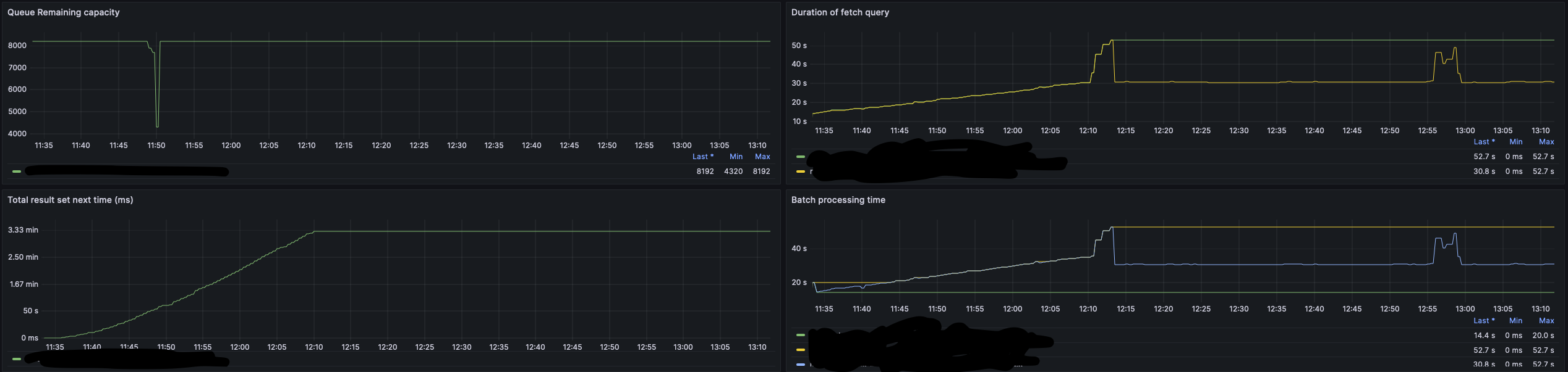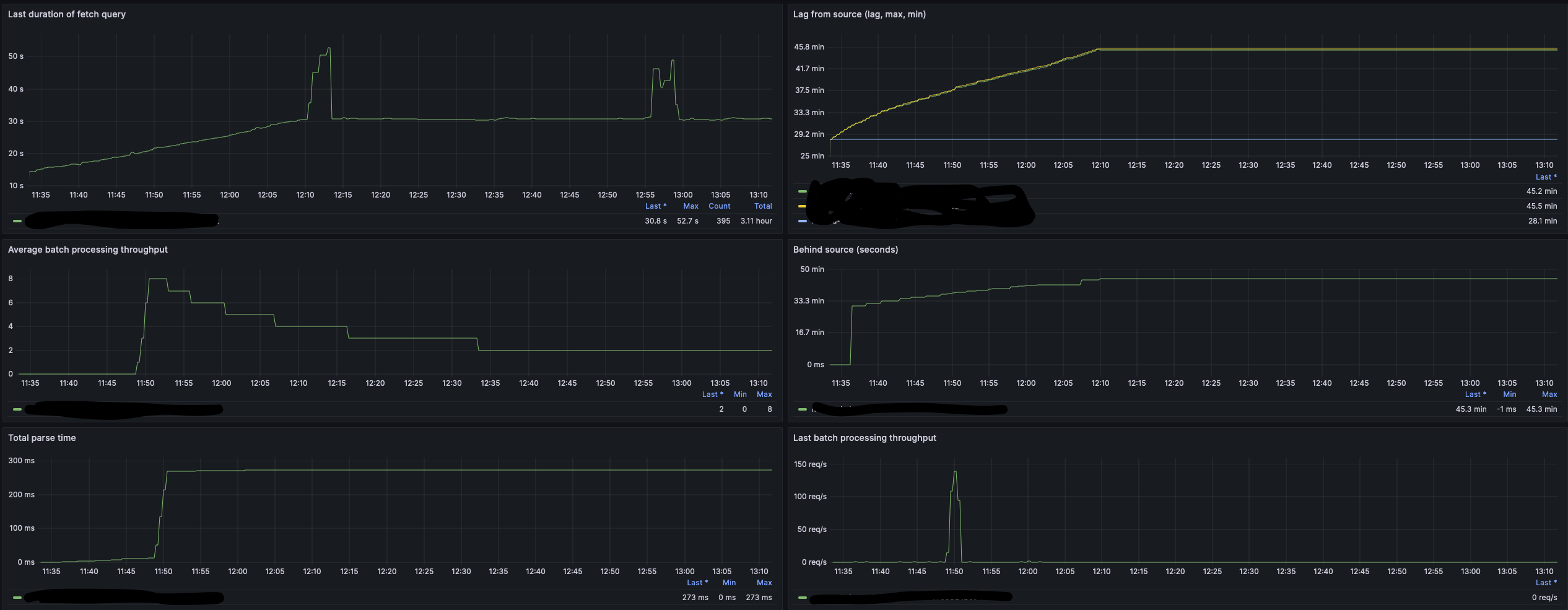 Sent 100.000 new data to the table from time to time, after a while (20 mins) it start to fall behind
