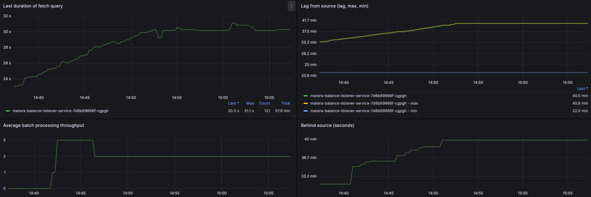 {"time":"2024-07-19T09:14:39.294-03:00","message":"Oracle Session UGA 2.52MB (max = 13.53MB), PGA 554.85MB (max = 570.79MB)","logger_name":"io.debezium.connector.oracle.logminer.LogMinerStreamingChangeEventSource","thread_name":"debezium-oracleconnector-mfi.debezium-change-event-source-coordinator","level":"DEBUG","dbz.connectorName":"mfi.debezium","dbz.databaseName":"DATABASE","dbz.connectorType":"Oracle","dbz.taskId":"0","dbz.connectorContext":"streaming"} {"time":"2024-07-18T13:04:44.304-03:00","message":"Max batch size too small, using current SCN 161955624544 as end SCN.","logger_name":"io.debezium.connector.oracle.logminer.LogMinerStreamingChangeEventSource","thread_name":"debezium-oracleconnector-mfi.debezium-change-event-source-coordinator","level":"DEBUG","dbz.connectorName":"mfi.debezium","dbz.databaseName":"DATABASE","dbz.connectorType":"Oracle","dbz.taskId":"0","dbz.connectorContext":"streaming"}