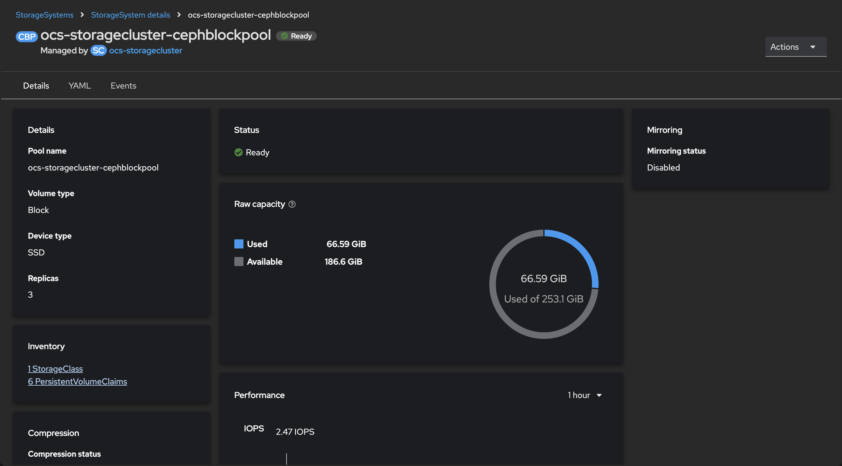 Seen in StorageSystem and CephBlockPool UI