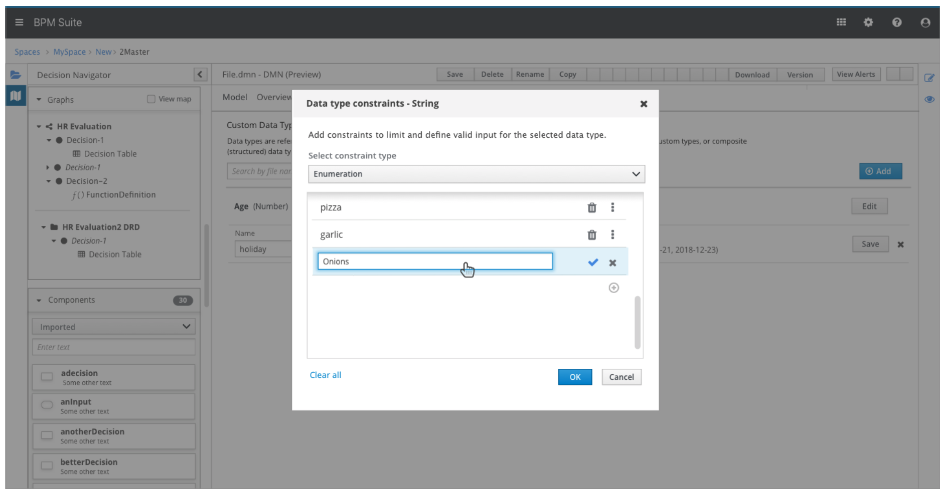 [DMN Designer] Data Types - Constraints (Range/Enumeration) - Add "String" component when the type is "String"