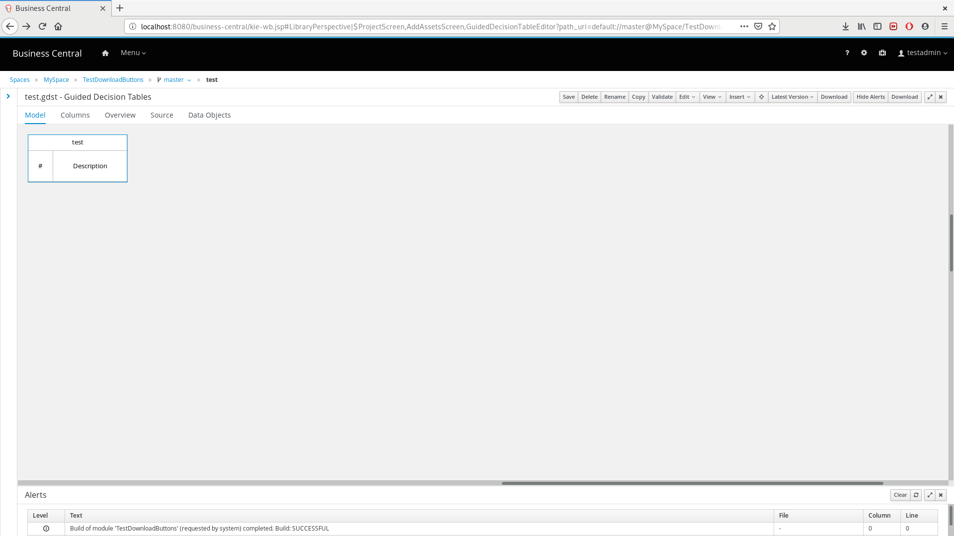There is two "Download" buttons in Guided Decision Tables Editor, both are working
