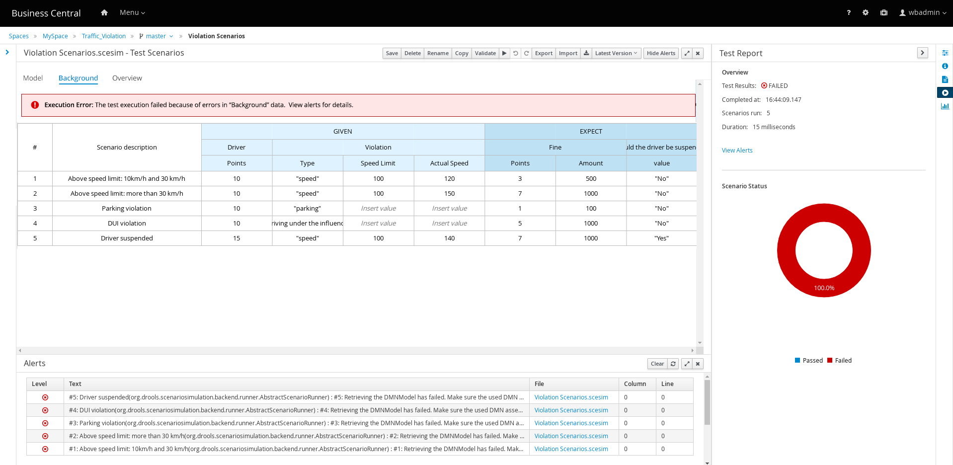 As a user I want to be informed about errors that occurred in the data I provided in the new Background tab. For more details about the Backround tab please see DROOLS-4162 and BAPL-1401.