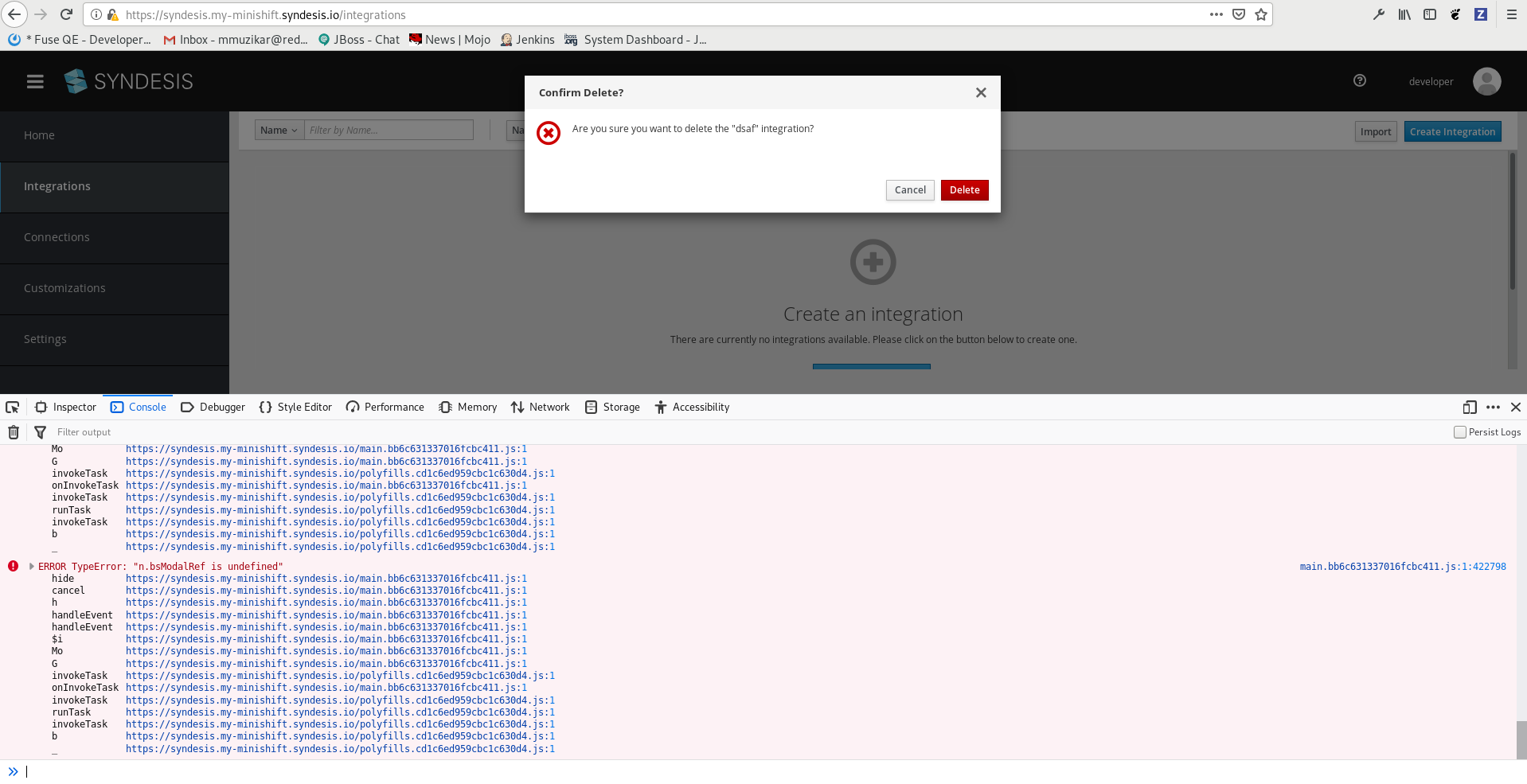 This happens due to the delay between user calling delete on integration and the integration no longer existing in the UI. The delay is sometimes too long and it seems that nothing is happening so the user decides to press delete again; the modal shows up and in that time the integration can be already deleted.
