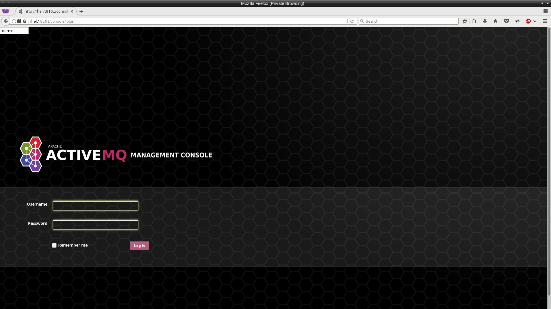 Open new tab / window in your browser. (You can try incognito mode / private window) Access directly hawtio console login page (e.g. http://localhost:8161/hawtio/login in case of old version and http://localhost:8161/console/login in case of new version) Wait couple of seconds before page fully loads Try to click anywhere in the page except the login form and try to type something on your keyboard to verify, that glitch is NOT triggered Optional: you can use browser's developer tools to make sure that all the elements of page you see are are actually present. Option 1): click to checkbox "Remember me" and trigger the glitch Option 2): select one of the inputs and try to fill credentials, trigger glitch by typing
