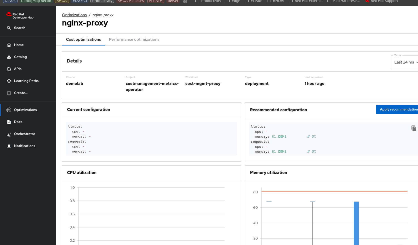 2. Click on a few containers in the Optimizable containers table and observe some do not have a current configuration.