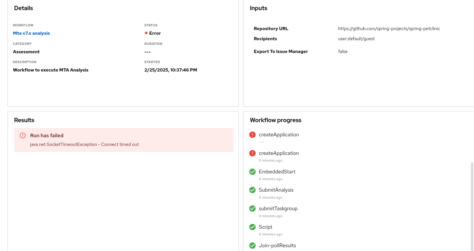 2. Deploy workflow like mta7 and cause it to fail with Error