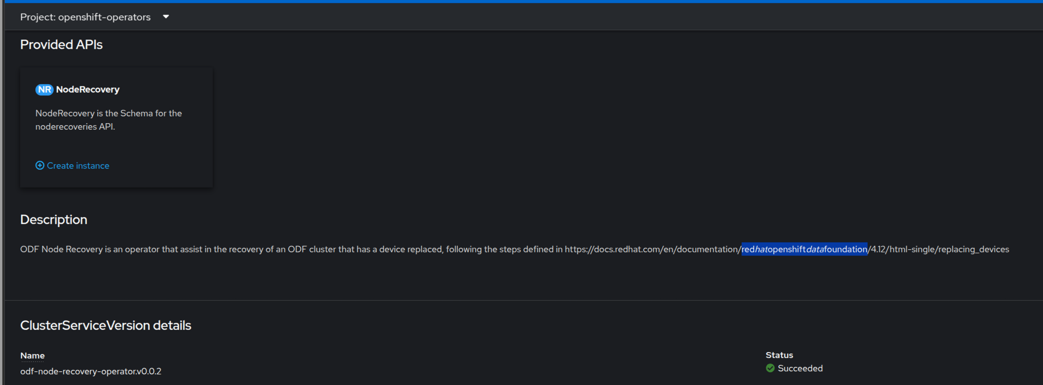 I installed the ODF node recovery operator, and the operator description links to a bad link: