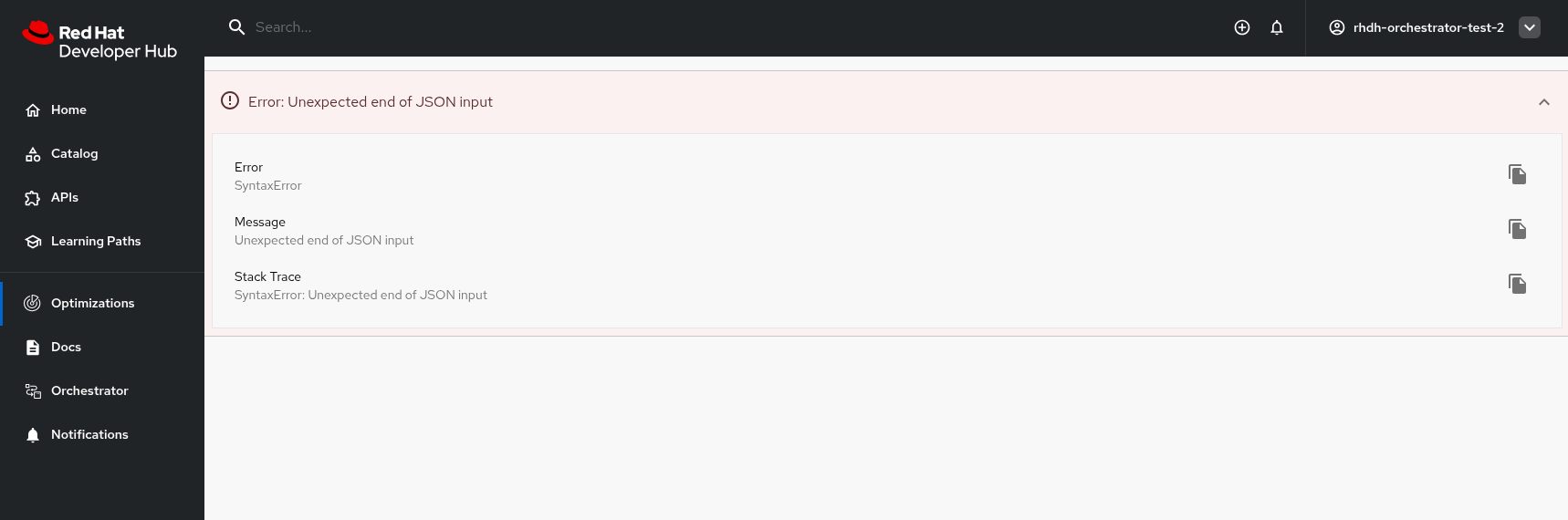 2. Go to RHDH and Click the Optimizations tab