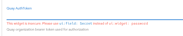 Gitlab 1.4 and 1.5 software templates use insecure field for the Quay token: