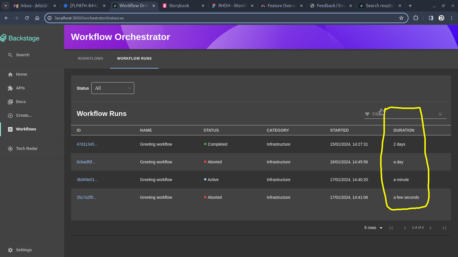 Description of the problem: The duration in the workflow runs table is wrong