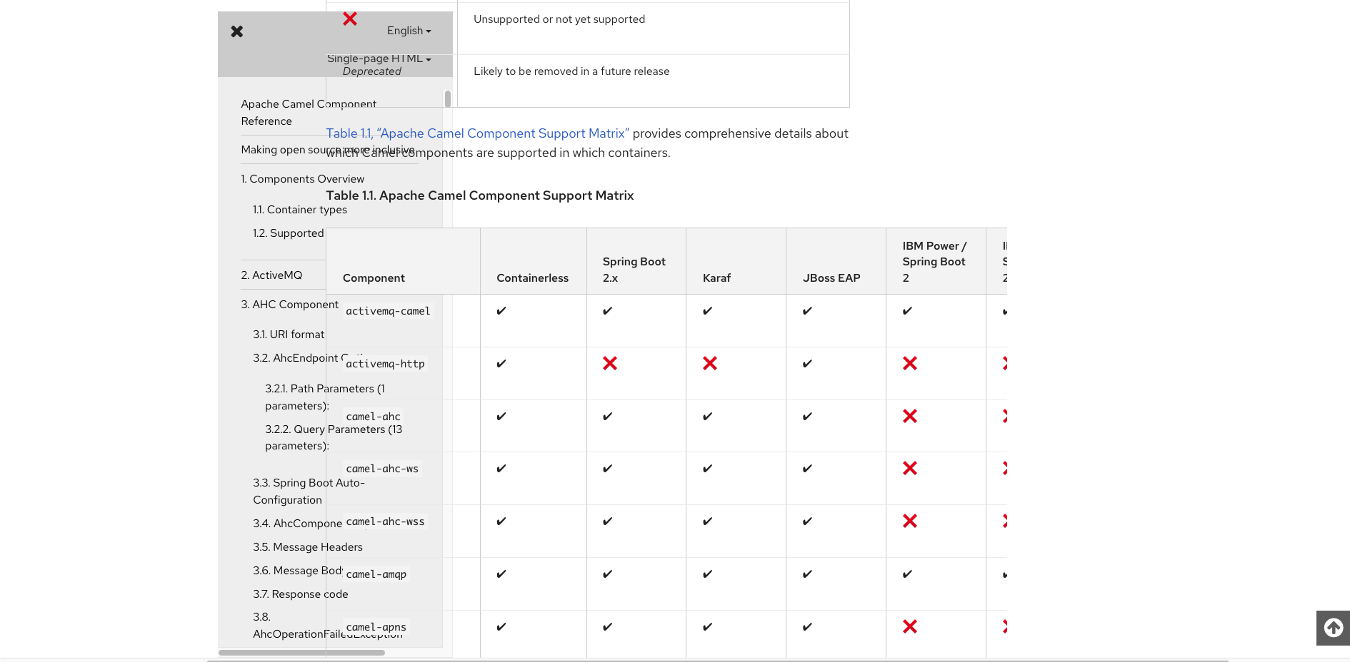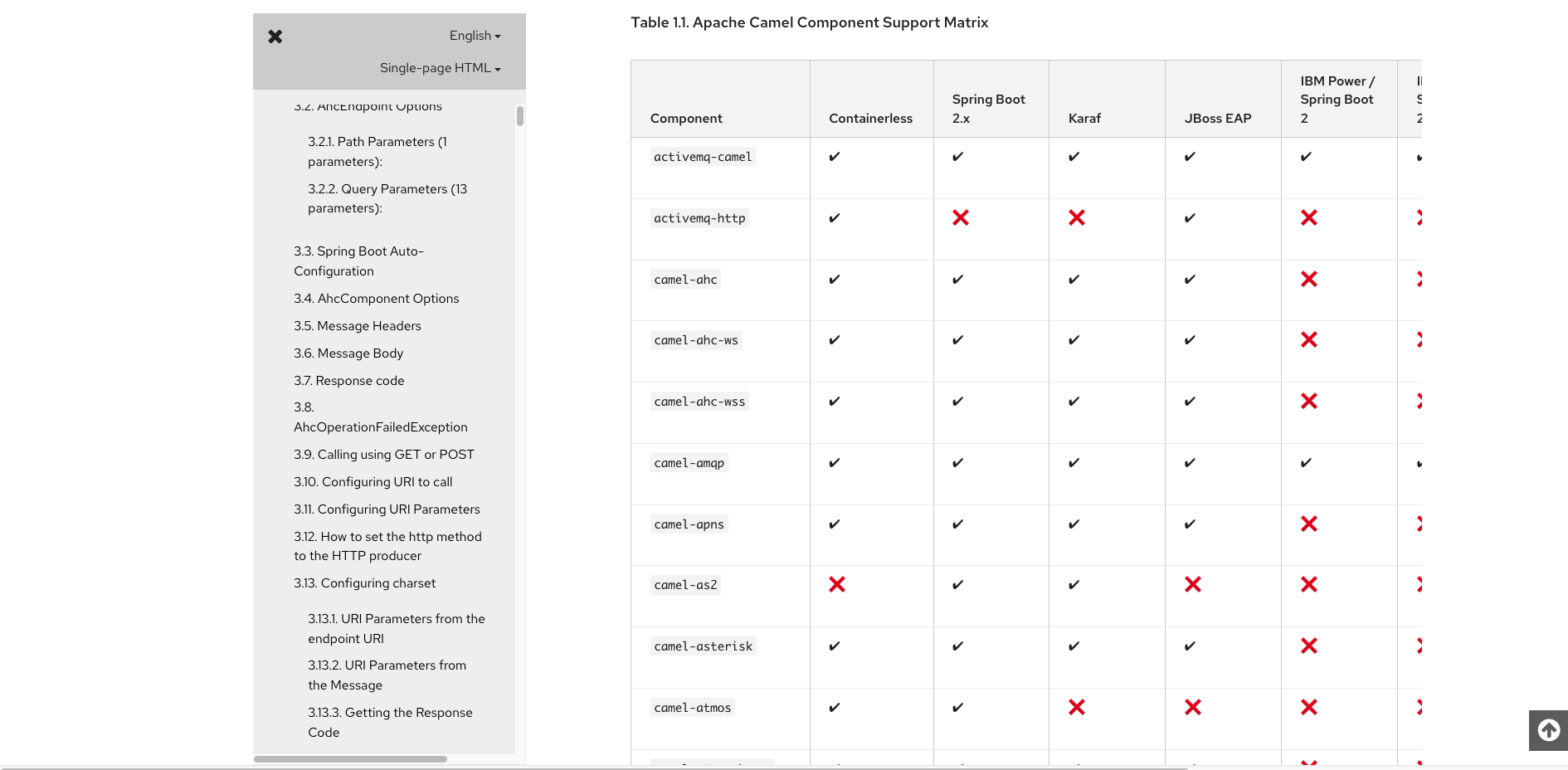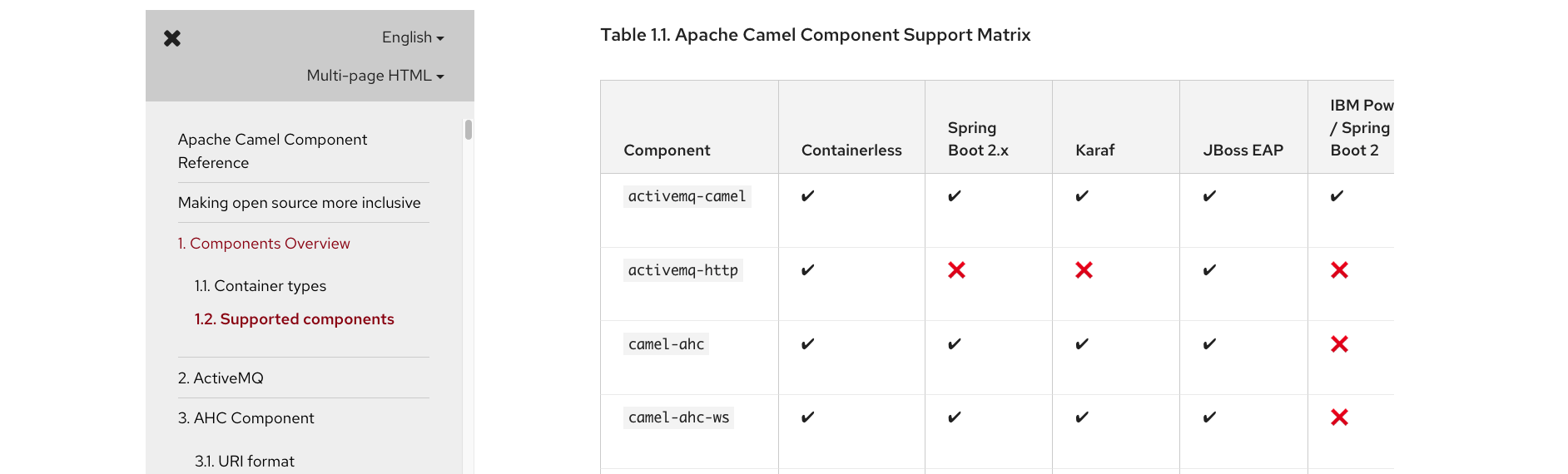 The formatting of the large table in the Camel component reference guide that lists all supported Camel component is improper.