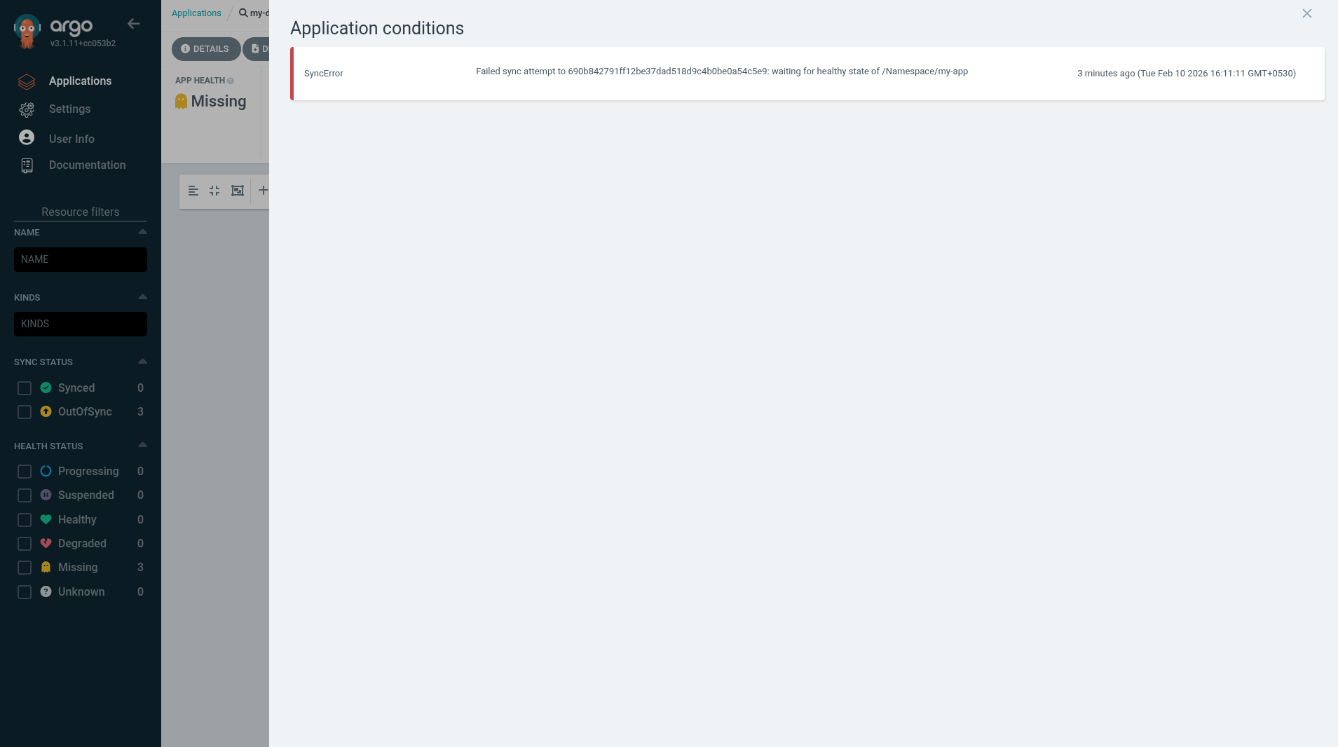 • Application created from agent cluster does not work as expected sometimes in of autonomous mode especially when CreateNamespace is set to true. Even with the ns created and auto sync enabled, the app remains in out of sync with a message "waiting for healthy state of /Namespace/<namespace name>"