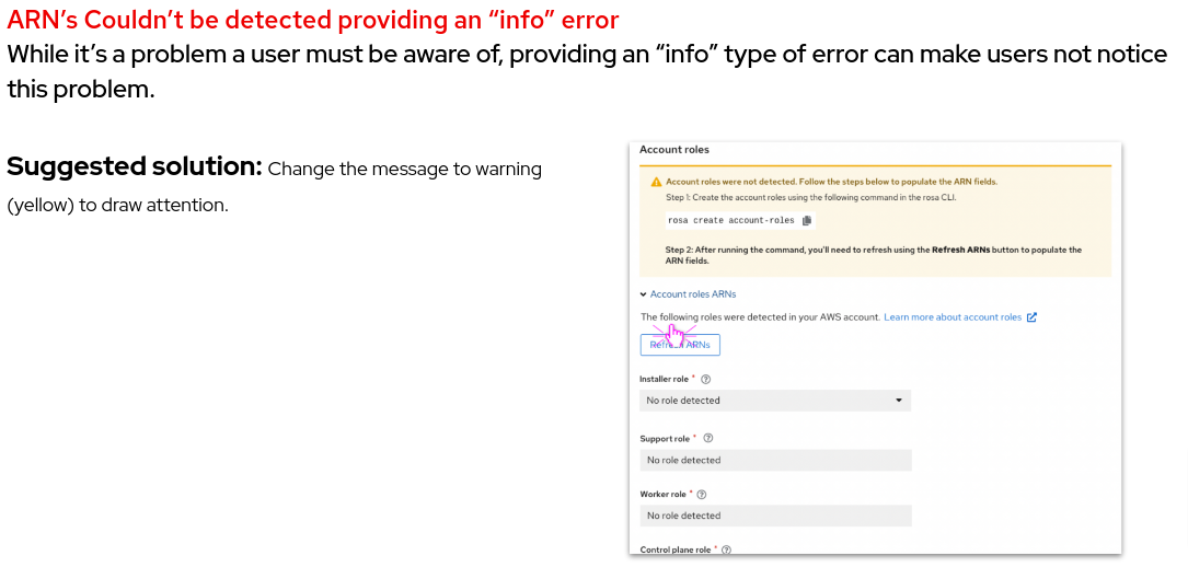 [Rosa Wizard] Step 1: 'Acct. roles not detected' should be an Warning alert