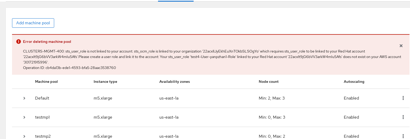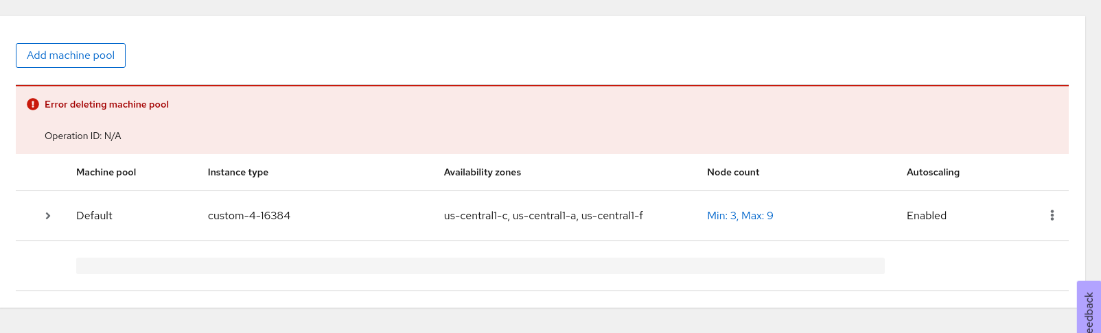 Whenever a request for deleting a machine pool is fired, a skeleton view is shown instead of the row data. If the request fails, the skeleton view should be reset back to the original row data.