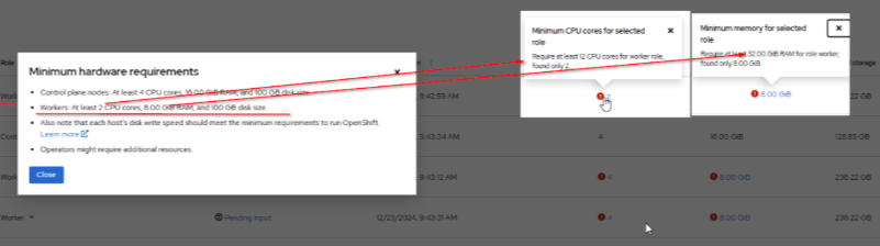 Deploy a new OpenShift Cluster via assisted installer with ODF. It shows: Require at least 12 CPU cores for worker role, found 2.
