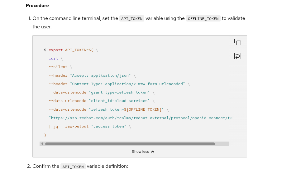 Needs checking: the authentication script doesn't work without using the OCM client now. Need to download CLI and omit other instructions.