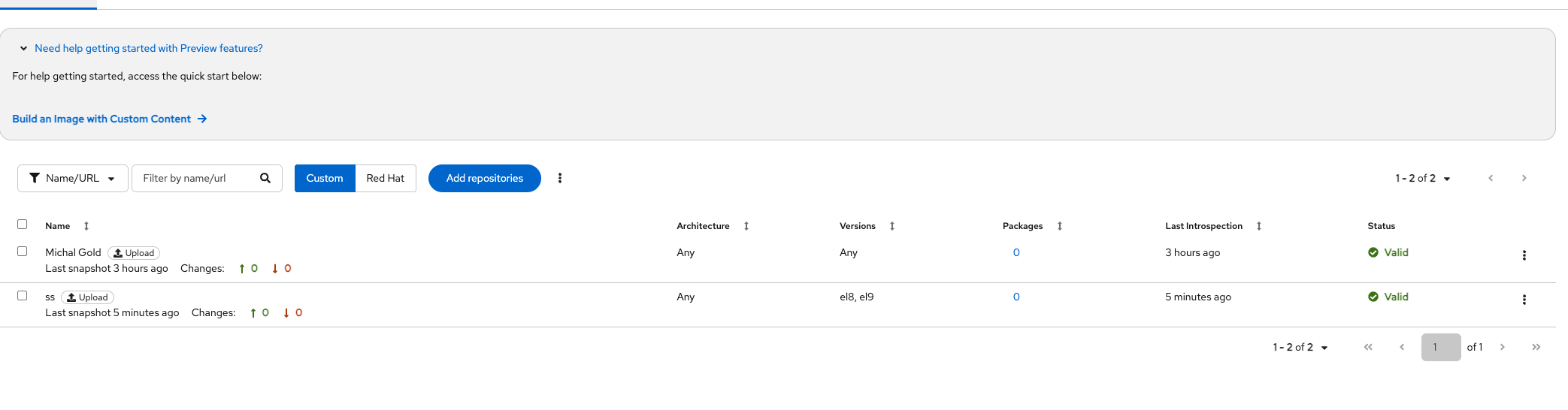 When creating a new repository with multiple versions (e.g., el8 and el9), there's a display inconsistency between the two systems:
