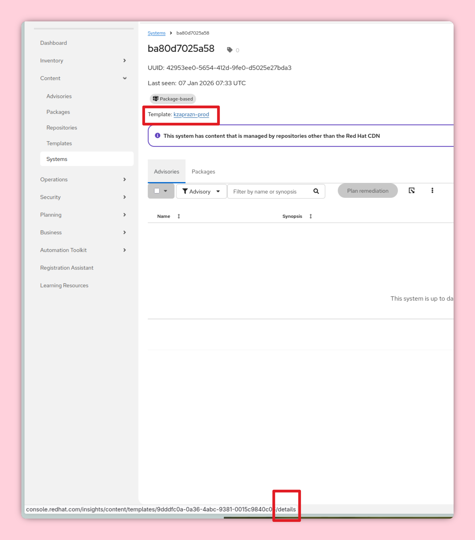 - The link should redirect the user to a detail page for the given template, not to the Templates list page