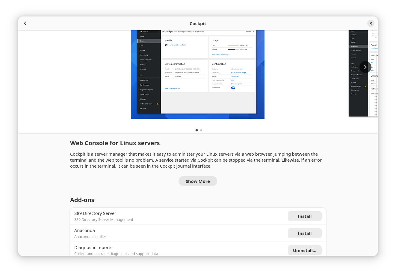 Anaconda should not be shown as an Anaconda is shown as Cockpit Add-on in the GNOME Software UI