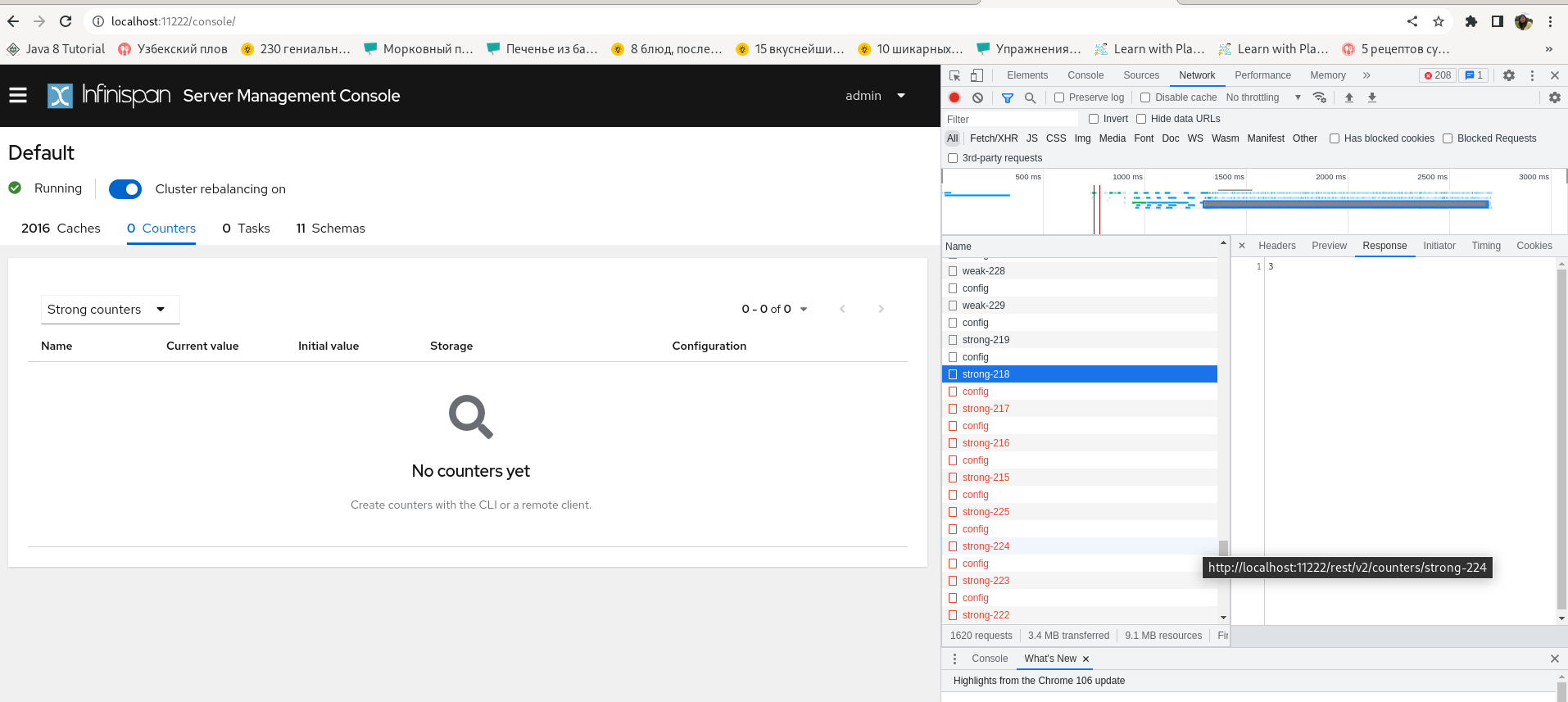 I have noticed one more thing: I am loading into server a lot of counters with create-many.sh.  If there are 600 counters (300 strong and 300 weak), they are loaded normally and shown on the page. If I change to load 800 (400vs400), then in console it shows 0 counters (see attachment). But the REST API returnes all of them.