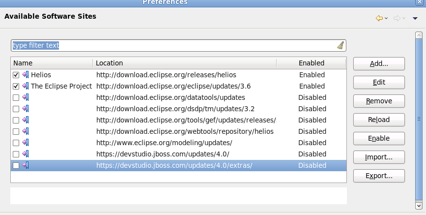 After JBDS installation there are not defined any update site in Help > Preferences > Available Software Sites